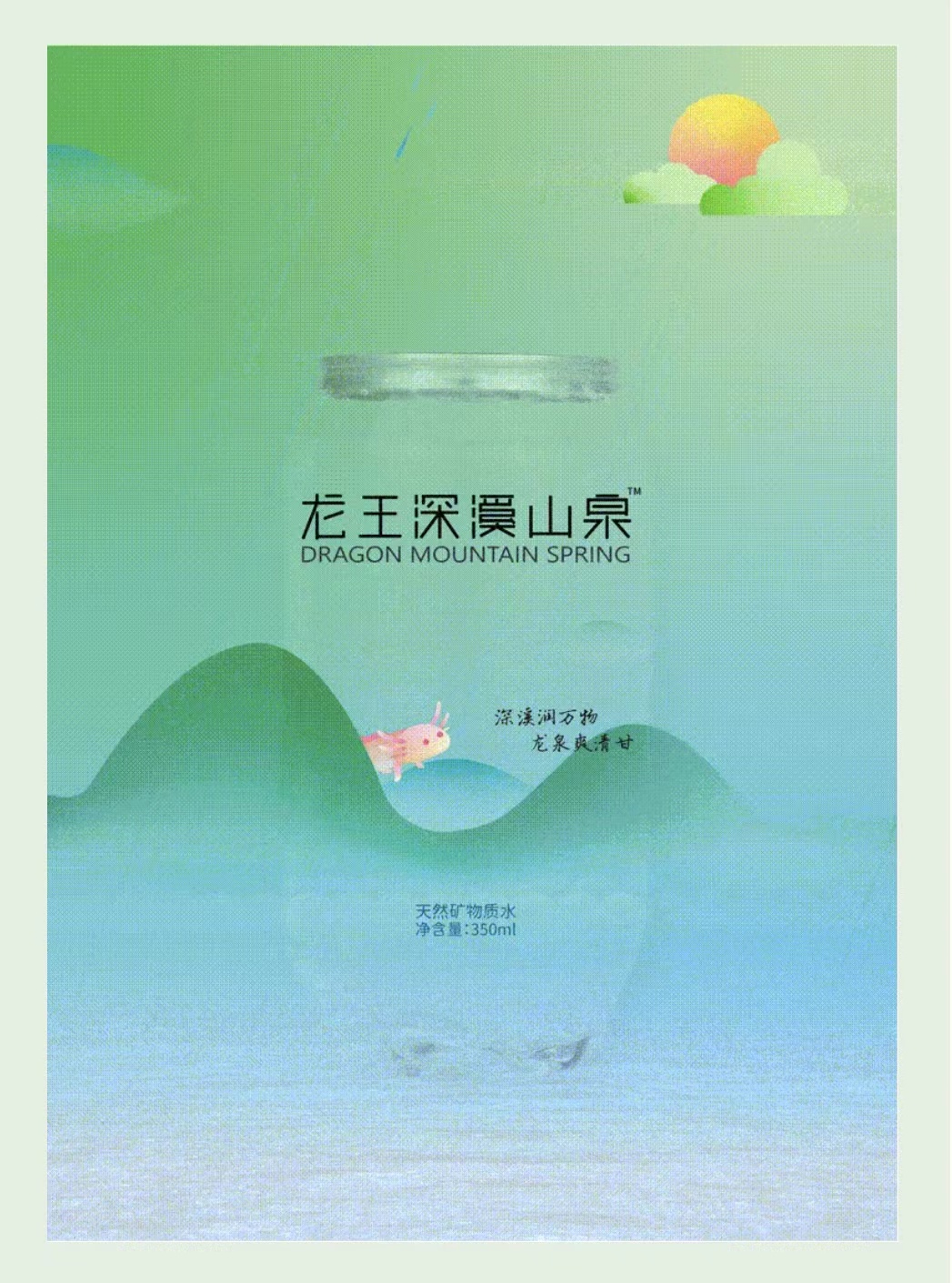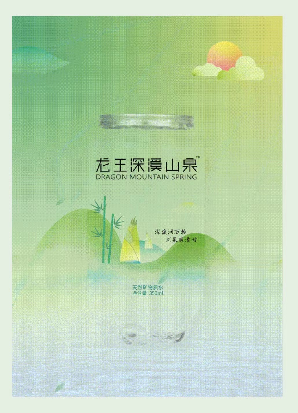 设计说明:本课题为商业真实项目,应客户与市场需求,安吉龙王深溪山泉包装设计,突出其自然纯净、生态多样、文化独特的品牌形象。以“两山”理论为指导,将龙王山四季风光和动植物元素作为包装主题,运用清新色调和图形元素,设计出不同规格和形式的系列化包装。同时,还设计了一系列品牌衍生产品,让消费者感受到品牌理念和文化内涵。通过系列化的包装设计,展现了龙王深溪山泉的回归自然、健康生活的价值主张,宣传了“绿水青山就是金山银山”的口号。