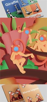 设计说明:本课题以南京红山森林动物园为主体进行相关研学产品的设计,以设计制作研学产品的形式进行动物保护知识推广和研学游活动融合的尝试。既对研学游活动的宽度进行探究和挖掘,又对中小学生传递动物保护知识。本课题以扁平化、简洁明练的风格进行动物形象的构建设计;以贴合动物原形的姿态设计体现动物形象;以高饱和、高明度为要进行色彩设计。以确保研学产品能吸引中小学生阅读兴趣,辅助研学活动开展,且有效传递教育知识给学生。同时,课题组也以动物图形为主要元素设计了大量衍生品周边。