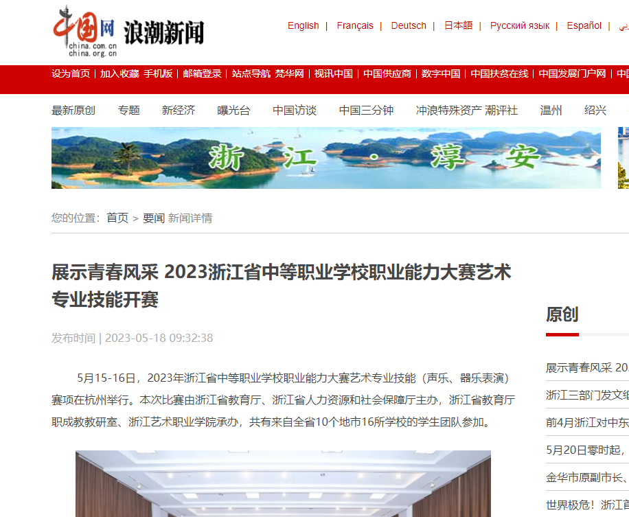 中国网浪潮新闻:展示青春风采 2023浙江省中等职业学校职业能力大赛艺术专业技能开赛
