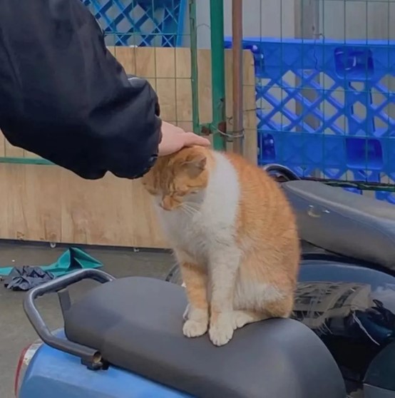 白天,我从寝室下楼准备出去吃饭。路过车棚时,我看见了一只大黄猫。它站在车垫上,沐浴在阳光下,表情慵懒,真是让人喜欢。我轻轻地抚摸了一下它,它好像并不讨厌。我不知它是喜欢还是已经习惯了这样的互动。
