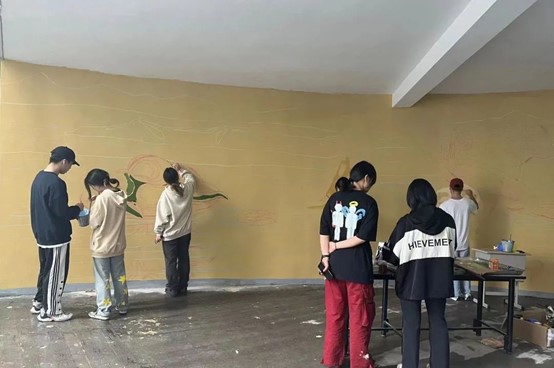 设计学子利用五一假期时间,积极投身于墙绘活动中,每一种颜色的调和,每一笔线条的绘制,看似轻松实则不易。迎着晨风,披着晚霞,同学们表现出了极大的创作热情,展现了坚韧不拔、无畏困难、吃苦耐劳、精益求精的专业素养和精神品质。