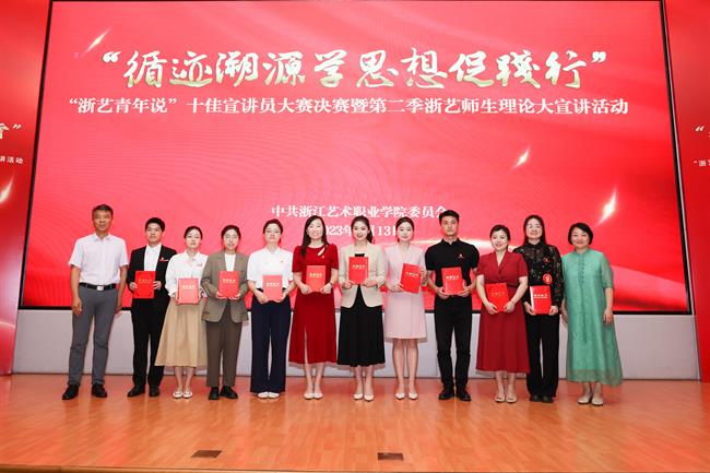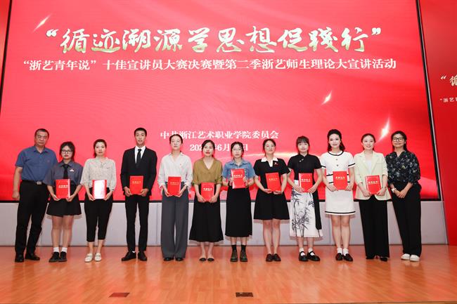 组织部(人才办)副部长马笑迎,马克思主义学院直属党支部书记、副院长陈毅为“浙艺青年说”十佳宣讲员大赛入围奖获得者颁奖