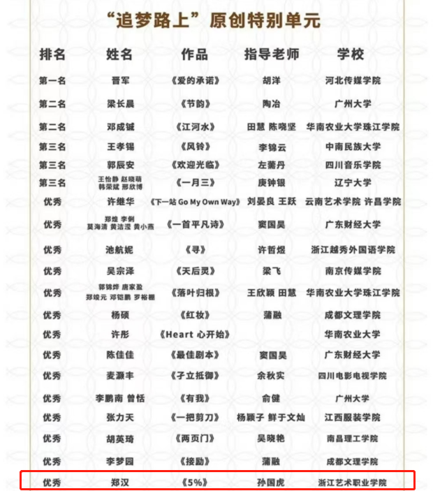 喜报 | 浙艺戏剧影视学院学生毕业设计作品《5%》,喜获“双奖”!