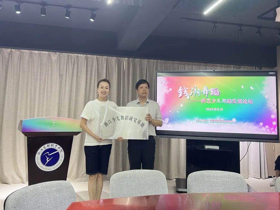 校党委委员、纪委书记徐芳,浙江省舞蹈家协会秘书长潘岚,舞蹈学院院长张星,党总支书记、副院长曹亮红等嘉宾和浙艺优秀校友代表、全省40多家培训机构负责人和专业教师参加交流研讨,舞蹈学院挂牌成立了浙江少儿舞蹈研究基地。舞蹈学院院长助理、舞蹈编导专业带头人包峥剡主持活动。