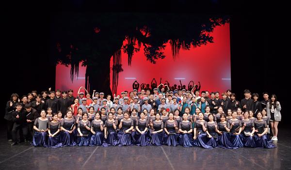 我校合唱团参加本次演出的阵容涉及音乐表演(声乐)专业63名学生,组成混声合唱团,现场演唱了芭蕾舞剧《红色娘子军》的全部合唱曲目,演唱具有感染力,生动又深情。