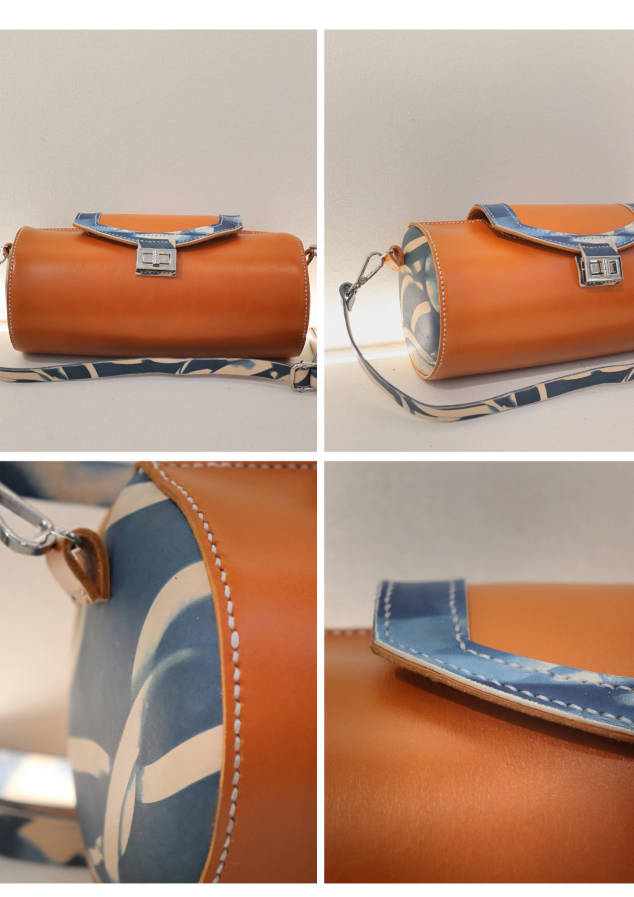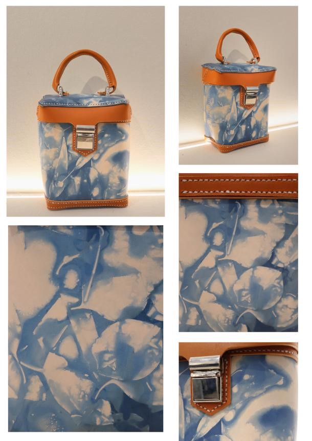 作品简介:研究传统染色与手工皮革结合的效果,挖掘中国传统染色技艺与手工皮革时尚设计的价值需求,增强民族文化自信,宣扬传统技艺的时尚性。不仅使对手工皮革传统工艺增加趣味性的设计理念,也是对中国传统染色开发创新的拓展应用。