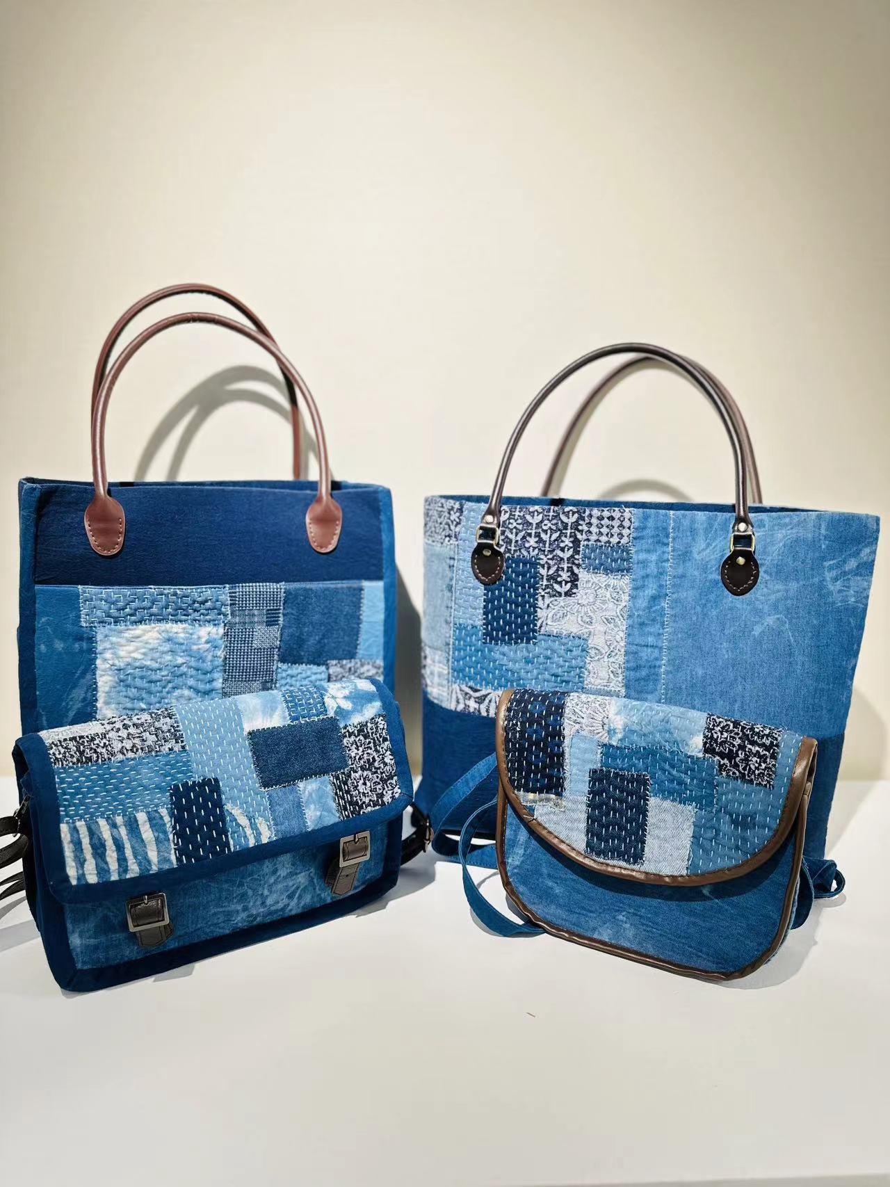 作品简介:其设计理念是将传统蓝染融入现代生活中,以不同颜色和不同材质布料拼接的形式,赋予其现代审美与实用需求,在传统、现代和实用方面做出一种创新,来发现传统蓝染应用在现代生活中的更多可能,取之自然,用之于生活。