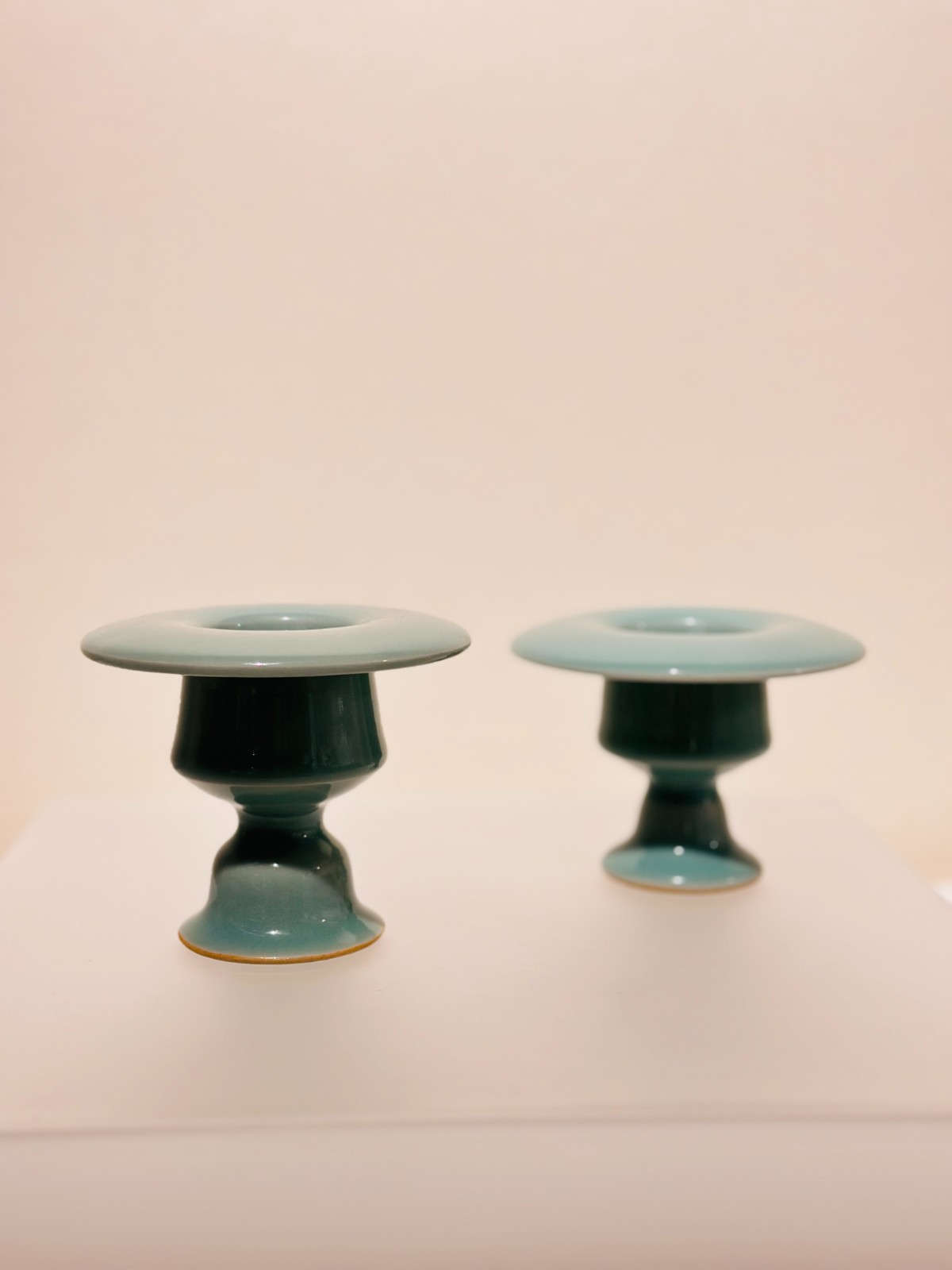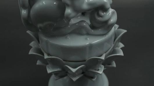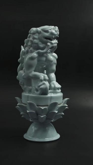 此项目灵感源自于故宫博物院藏宋代李公麟长卷纸本《维摩演教图》,画中香几上有一具口出香烟的狮子熏炉,炉尺寸在二三十厘米之间,炉身是覆莲座上捧出的一朵莲花,花心里的莲蓬为炉盖,盖顶一只戏球的坐狮,偏着头,张着口。所谓“反视张口,用以出香”,原是出香狮子一个固定的姿态。如韩国国立中央博物馆藏一件狻猊出香,通高二十一点二厘米,炉口翻出宽折沿,直壁形的炉身,下边三个兽足,炉盖上耸出一尊张口戏球的坐狮。釉色碧青,正是所谓的“翡色”,虽然样式与《维摩演教图》上所见稍有不同,也能成为宝贵的质料之一。本项目创作的南宋官窑“狮形香薰炉”,以南宋官窑粉青釉色为主色调,采用紫口、铁足、冰裂、支钉烧成等工艺来表现。选取款传统经典的香薰炉加以运用,以狮形香薰炉为主要造型,以鹿衔灵芝、鸳鸯形为辅,在南宋官窑青瓷上呈现。狮子熏炉在南宋时期作为香道用器的顶峰之作,将它搬入现代陶瓷创作,可以让我们很好地关注到宋人的香诗和香事,感受宋代时期的文人风雅,体会宋人的诗与思,重现南宋时代下充满细节的生活志趣。在“宋韵”文化的大背景下,结合了手工艺学院民传专业的课程教学实施,让传统香道器具与现代陶艺制作相碰撞。同时也将香道文化中“净心契道、品评审美、励志翰文、调和身心”的君子德行通过器物传达出来。同时,专业的建设和学院的发展紧密相联的。将青瓷文化和当代生活美学更好的融合创造出“好用且美”日用之器是专业教学的使命。