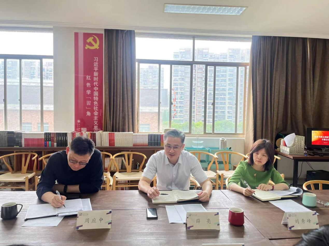 薛亮充分肯定了设计学院近年来在双高建设、人才培养、产教融合等方面所取得的成果。他表示,在全党上下深入开展学习贯彻习近平新时代中国特色社会主义思想主题教育之际,通过蹲点调研,深入了解各专业发展现状和专业建设中痛点、难点和堵点,有利于促进学校针对性整改和高质量提升。他指出,今年是学校“十四五”规划承上启下的关键一年,希望设计学院能进一步凸显专业发展特色,紧抓重点任务主攻方向;进一步聚焦行业发展格局,狠抓产教融合平台打造;进一步明确人才培养方向,致力培养高素质德技兼修人才,在助推学校进入规模和质量双提升的发展轨道中贡献力量。