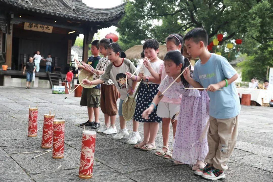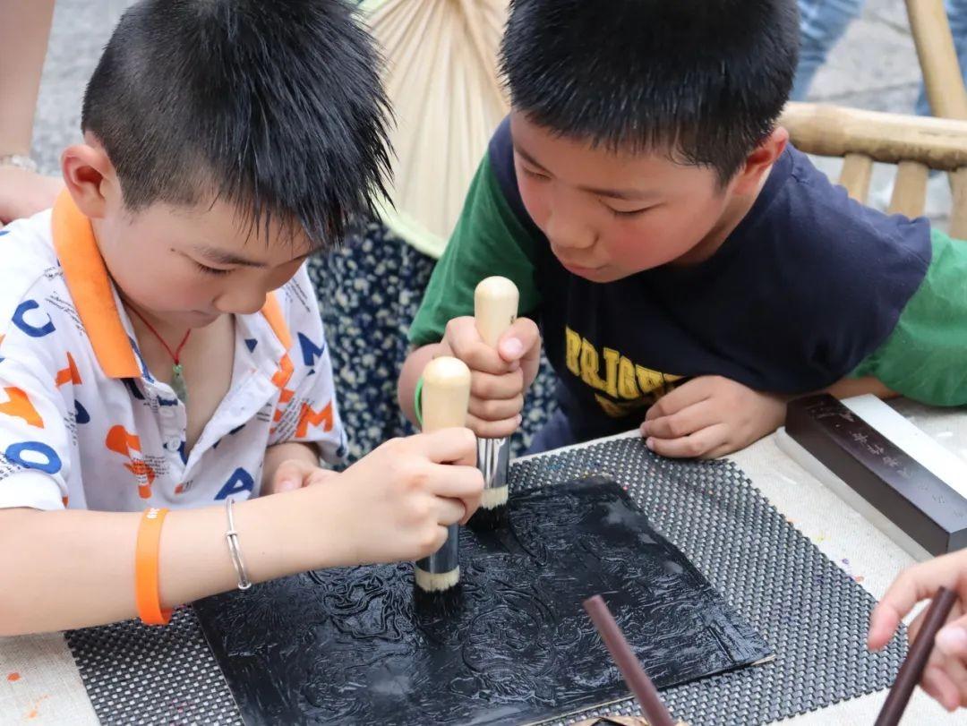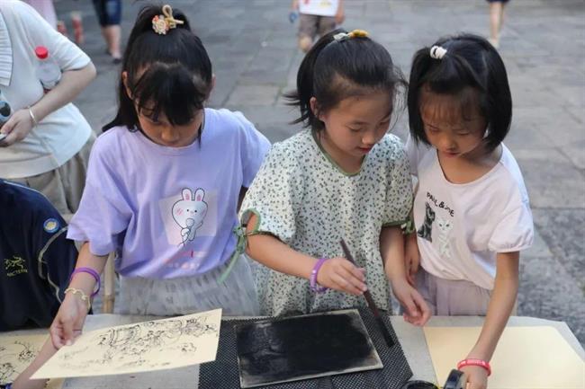 在手作体验区,水印木刻、投壶等项目吸引了许多亲子家庭的积极参与,在玩耍互动中,非遗寻知体验让孩子们印象深刻。