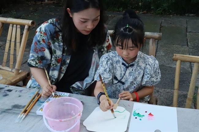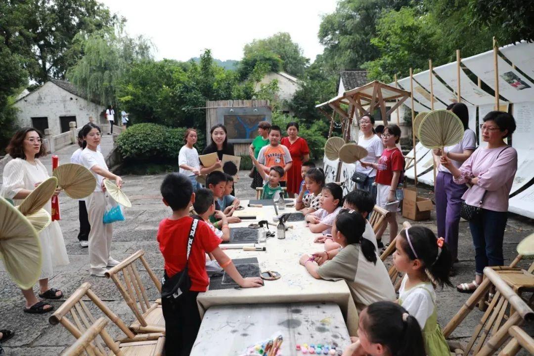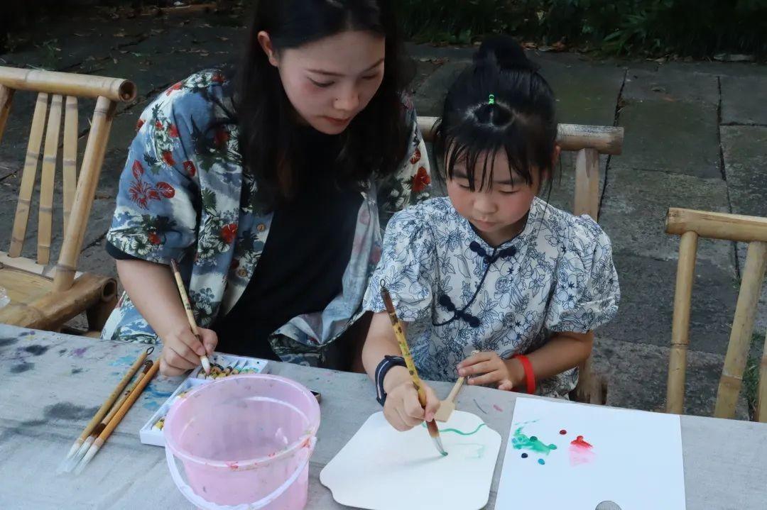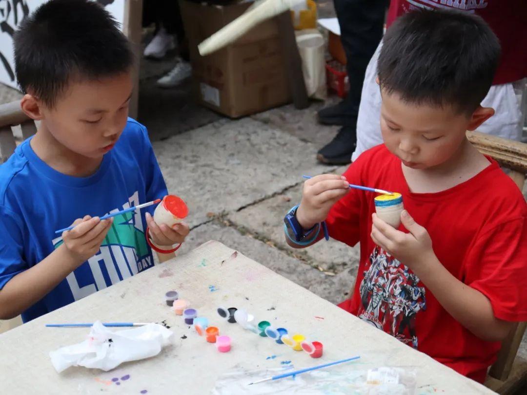 童心巧绘精彩。游客们充分发挥想象力和动手能力,巧手点缀扇面、陀螺,将其幻化为独一无二的作品。