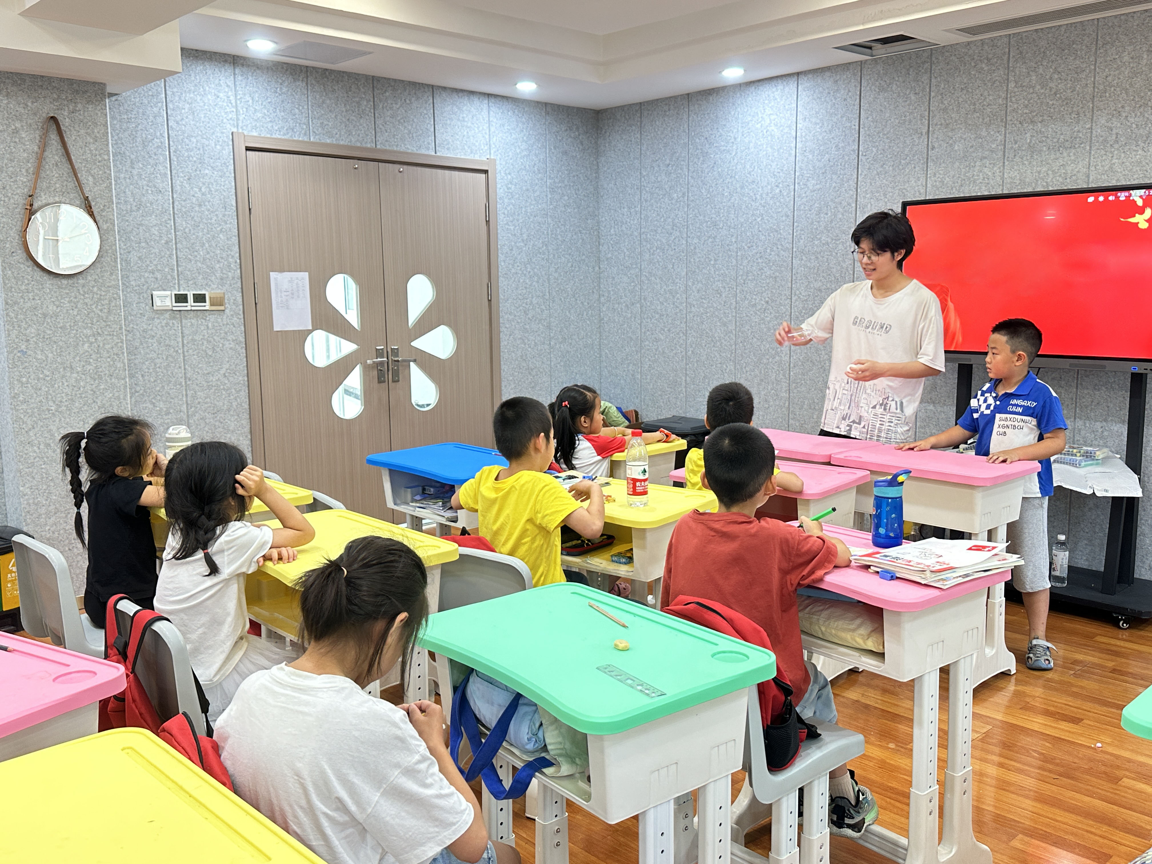 浙艺学为“小候鸟”开设了“基础+艺术+拓展”的融合课程体系,除了夯实学习发展基础的暑假作业辅导,还邀请了杭州滨江公安分局法制大队劳模吴仁贤给小朋友们开展安全和劳动主题教育。