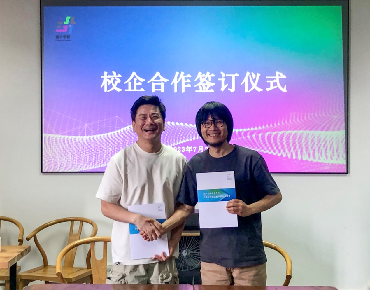 为进一步优化人才培养模式,切实推进与一线演艺企业的“紧密结合、互惠互利、优势互补、共同发展”合作机制。7月4日,杭州合田文化创意有限公司暨杭州邵白戏剧工作室负责人邵白、总经理何杰勇、主创编剧余晓伟来访交流,并签订校企合作协议。设计学院常务副院长李昌国及相关专业教师参加。
