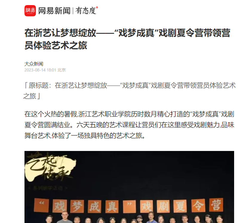 网易新闻:在浙艺让梦想绽放——“戏梦成真”戏剧夏令营带领营员体验艺术之旅