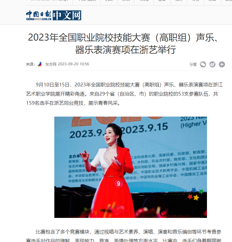 中国日报:2023年全国职业院校技能大赛(高职组)声乐、器乐表演赛项在浙艺举行