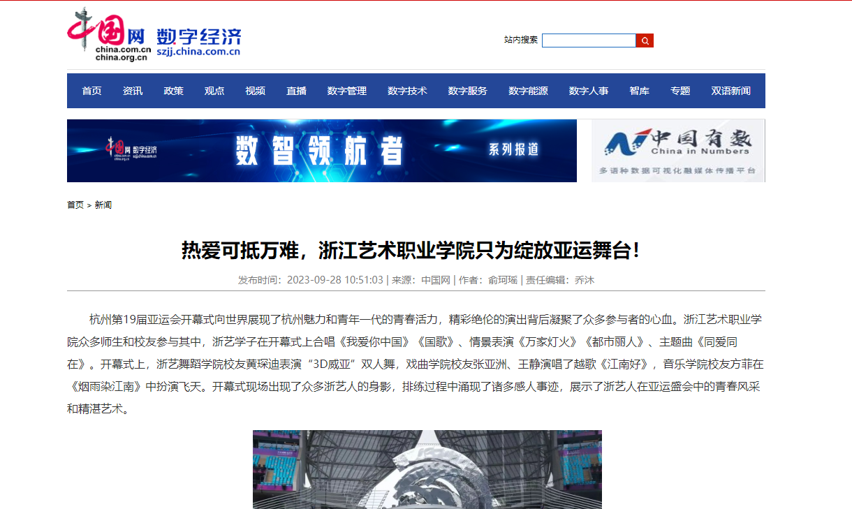 浙艺杭州亚(残)运会开闭幕式演出群演组织保障领导小组排演工作组成员、舞蹈学院党总支书记、校团委书记郑吟告诉记者:“从4月21日专班成立到9月23日亚开演出精彩呈现,留在工作电脑里的,是90余份存档材料,记录着过去5个月浙艺参与杭州亚(残)运会群演保障工作中的全过程。5个月来,学校工作专班始终保持‘日沟通’无间合作。统筹组保持对外联络,排练计划、师生保障等信息畅通;学生管理组坚持全员在岗,管理制度和关爱措施落实到位;后勤管理组暖心保障师生用餐用水防暑降温,每天安排校医随队,尽力满足师生需求……精彩呈现的背后是全体师生共同努力付出的集成。浙艺服务亚运的脚步还在继续,师生还将承担亚运会闭幕式、亚残运会开幕式群演工作,用自己的实际行动践行‘我在窗口写青春’的誓言。”