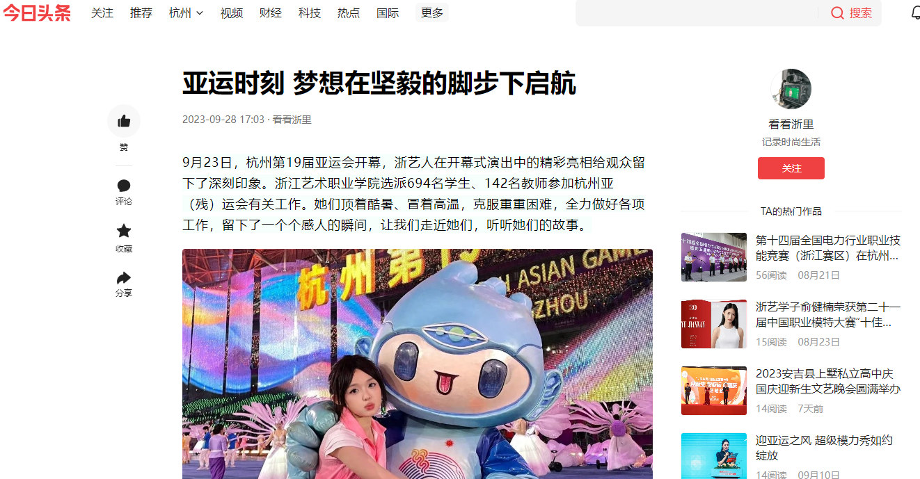 今日头条:亚运时刻 梦想在坚毅的脚步下启航
