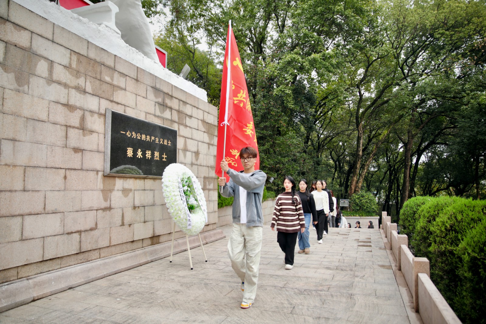 参观结束后,党校全体师生在蔡永祥烈士碑前举行祭奠仪式。全体学员们行注目礼,党校学员代表向革命烈士敬献花篮,缅怀英烈。胡卓群在勉励学员以英烈为榜样,以家国情怀激励奋斗,保持优秀,追求卓越。全体三鞠躬默哀,并绕碑瞻仰。