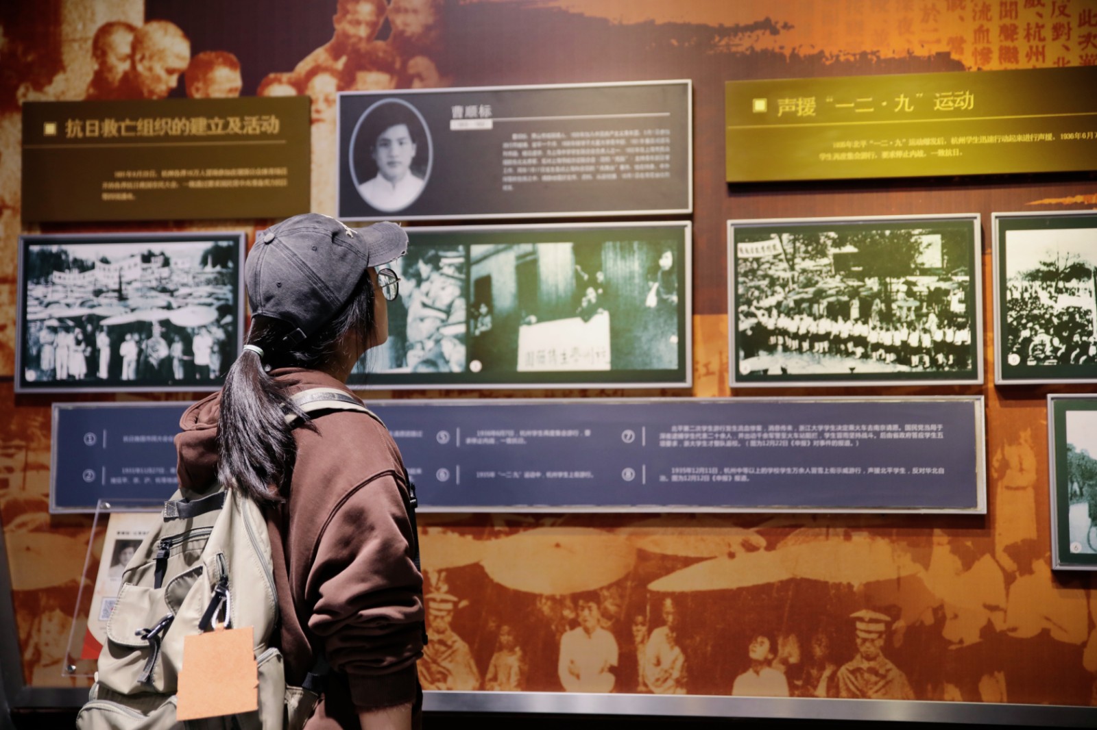 在杭州市革命史展厅,师生们参观了杭州人民在党的领导下近一个世纪以来前仆后继的革命斗争历史,深入了解从大革命时期到土地革命、抗日战争,直至抗美援朝革命烈士的战斗历程和光辉事迹。见义勇为陈列厅中主要介绍杭州市内来自不同领域见义勇为的人物,他们当中大部分都是普通人。学员们认真学习着震撼人心的红色故事,深刻体会着一位位烈士用生命谱写的英雄赞歌,感悟着英雄们崇高的信仰和大无畏的牺牲精神。