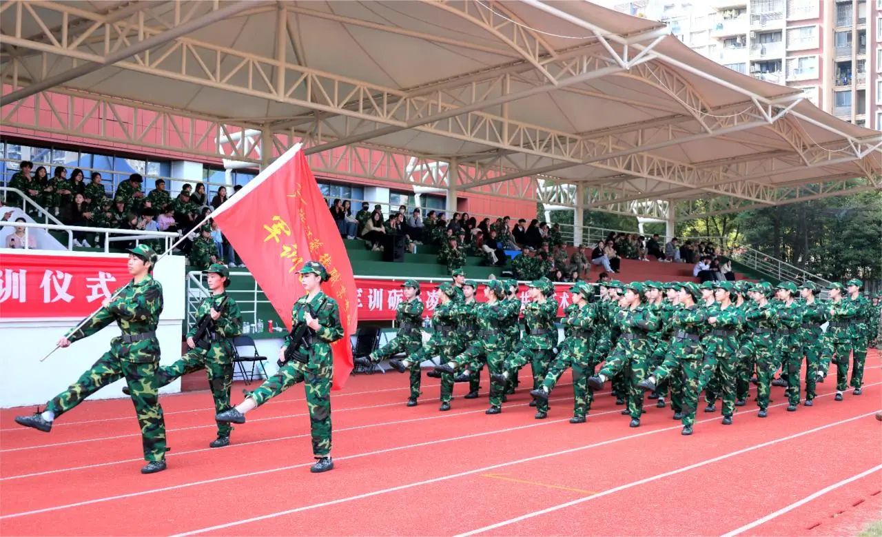 “经过十四天艰苦的军训,同学们的精神更饱满了,眼神更刚毅了。”