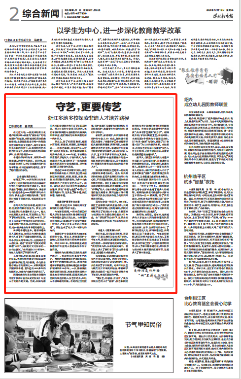 浙江教育报:守艺,更要传艺——浙江多地多校探素非遗人才培养路径