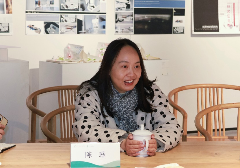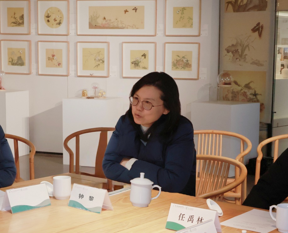 手工艺学院党总支书记钟黎介绍了学院课程体系,专业间的联动模式,人才培养方案,双方就校企项目合作和学生实习就业方面进行深入的探讨交流。