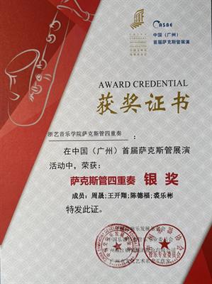 此次,我校选派了一支由多位萨克斯管专业优秀学生组成的代表队,参加了包括独奏和重奏在内的多个项目比赛。学生们经过长时间的刻苦练习和精心准备,在舞台上展示了精湛的演奏技巧和深刻的艺术理解力。在重奏比赛中,由4位音乐学院学生组成的团队凭借默契的配合,演绎了经典萨克斯管四重奏作品《Premier Quator》,最终荣获了重奏组银奖。