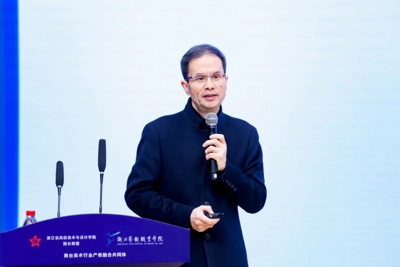 浙江省高校美术与设计学院院长联盟秘书长、浙江万里学院教授周斌作联盟工作报告,他从宗旨理念、会议活动、联盟提升、增设力量4个方面提出论坛共赢议题。联盟创建人之一、绍兴文理学院教授、高等美术教育学会产教融合工作委员会主任陈浩回顾了联盟成立之初凝聚共识的艰辛历程,希望依托联盟平台,整合信息,打通渠道,扩大影响力,努力实现联盟的发展目标。