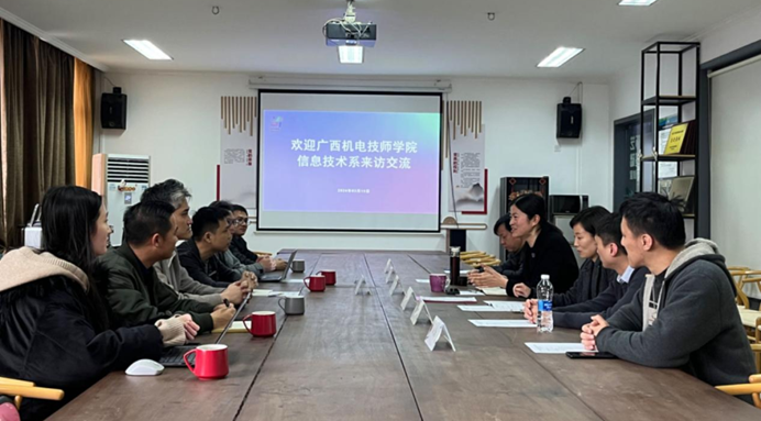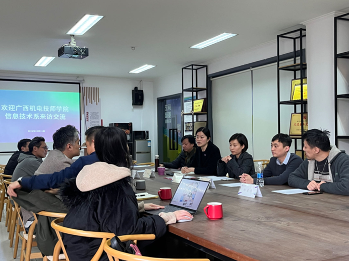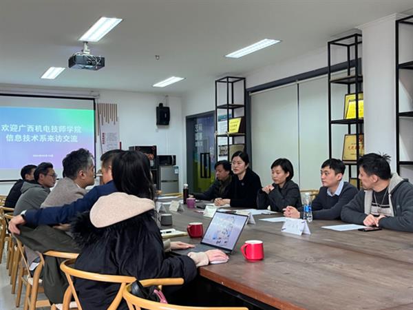 刘学谦介绍了广西机电技师学院信息技术系的专业建设以及实训、参赛和就业的相关情况,希望双方能在人才培养、课程设置、实习实践等多方面进行交流学习,促进学校向着更深、更广、更远方向发展。