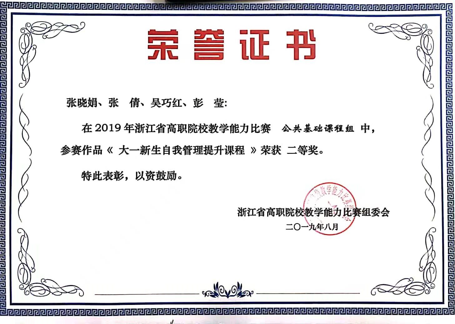 4《大一新生自我管理提升课程》荣获2019年浙江省高职院校教学能力比赛二等奖.jpg