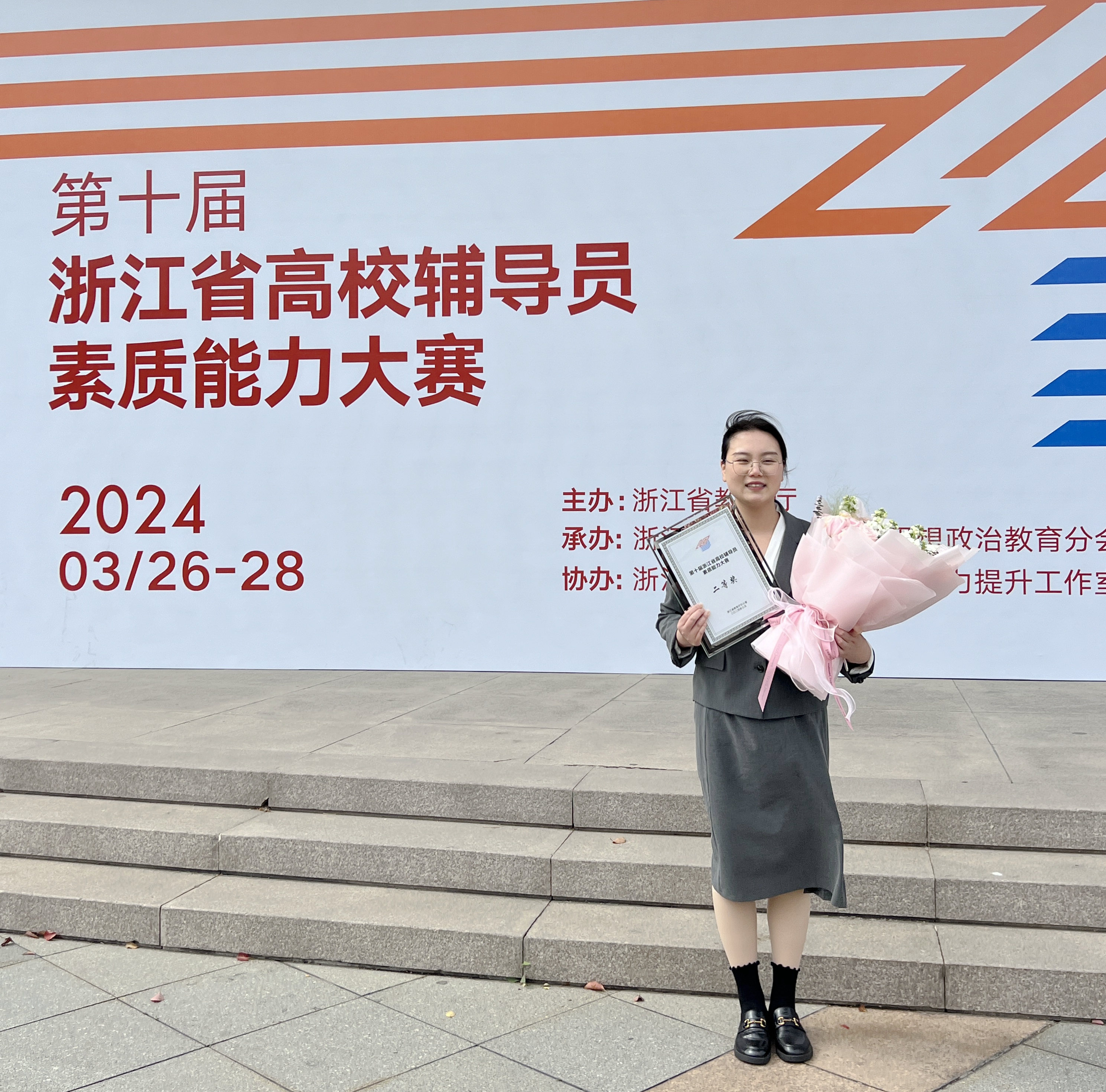 ▲辅导员林慧获第十届浙江省高校辅导员素质能力大赛二等奖