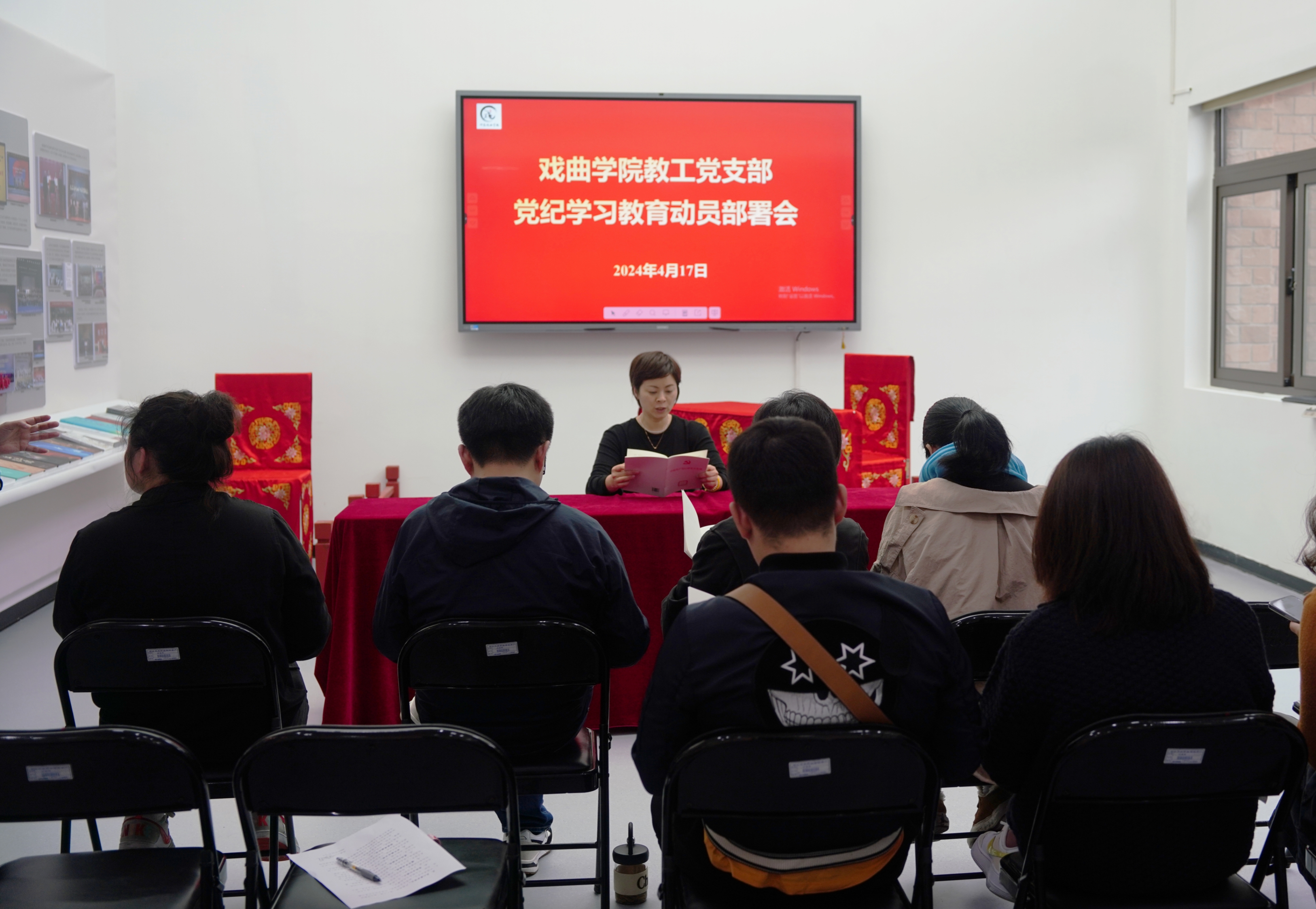 4月17日下午,戏曲学院召开党纪学习教育动员部署会。院长、党总支副书记周伟君主持会议,学院全体党员参加。