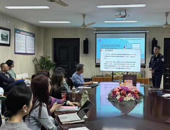 4月3日中午,戏剧影视学院邀请杭州市公安局滨江分局浦沿派出所防区警长周一骁以《远离电信诈骗,构建平安校园》为主题开展专题讲座。戏剧影视学院党总支书记许瑛、全体班主任和辅导员参加。