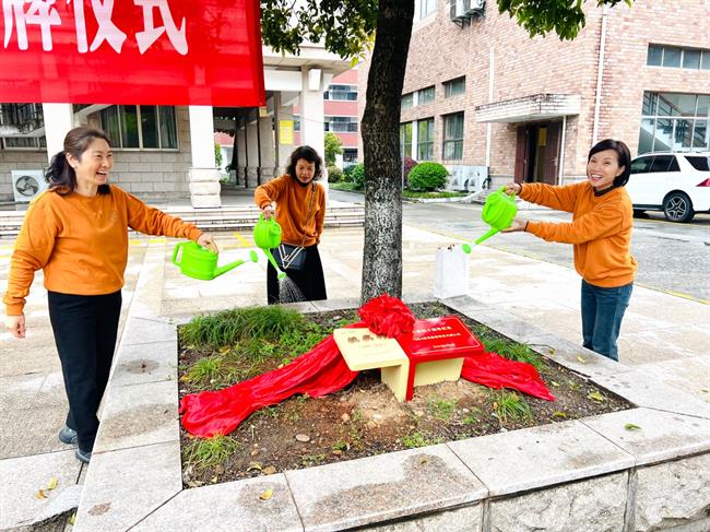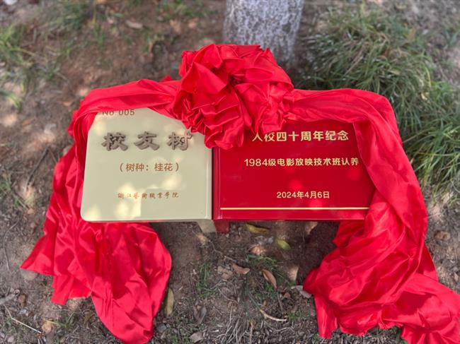 会后,举行了班级“校友树”揭牌仪式,84级电影放映技术班用认养“校友树”的方式和母校共同铭记入校40周年这一特别的日子,寄情于树,将对母校的情谊扎根于浙艺校园。