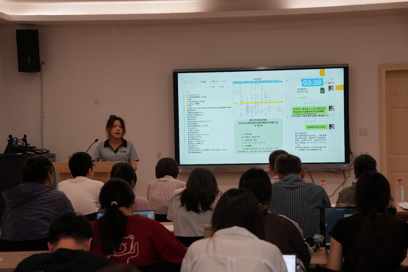 5月24日,我校2023-2024学年“勤工助学之星”评选活动在图信中心研讨室举行,校图书信息中心主任项骏,组织部副部长、人才办副主任吕清华,宣传部副部长、统战部副部长杜俏俏,学生工作部副部长、学生处副处长顾斌,教务处副处长冯妮婷担任评委,各学院学生代表观摩比赛。