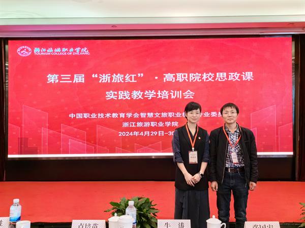 由浙江旅游职业学院举办的第三届“浙旅红”·高职院校思政课实践教学培训会于4月27—30日在杭州举行,马克思主义学院直属党支部书记、院长王筱芽,概论教研室主任孙彪参会。王筱芽在会议上作了题名为《浙艺思政课堂:以艺为媒、四维四育,开启思政课实践育人新篇章》的报告,向与会者分享了浙艺马院在思政课实践教学过程中始终凸显以艺为媒三大要素,遵循四维四育行动路线,构建了独具艺术特色的、具有推广价值和示范作用的思政课实践教学体系,得到了与会专家、学者、同仁的一致和高度认可。