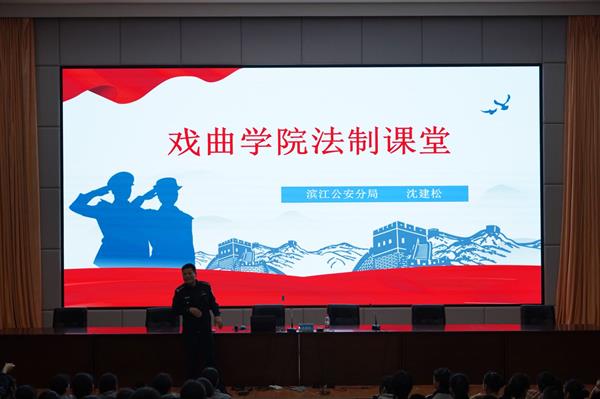 4月28日,戏曲学院开展校园安全教育专题讲座,特邀杭州市公安局滨江分局一级警长沈建松警官为师生们授课。