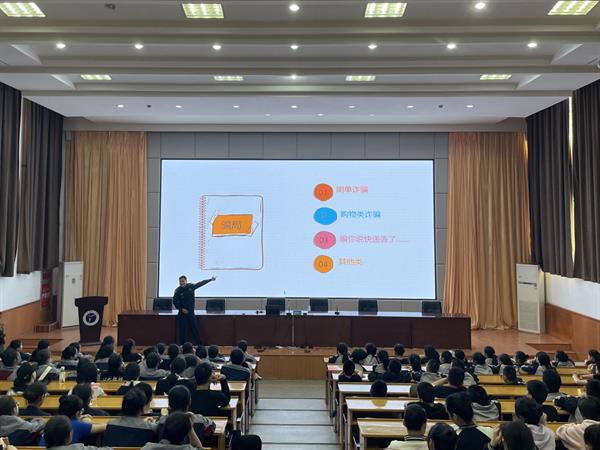 沈警官通过案例,向同学们详细介绍了几种常见的诈骗套路,如:刷单诈骗、网购诈骗、冒充客服类等。他强调,诈骗分子具有多样性、复杂性、危险性等特点,常常利用学生的好奇心和盲目跟风等心理实施诈骗,同学们要保持清醒的头脑,不轻信陌生人的信息和诱惑,最重要的是做到对不明链接、人员、信息,做到“不点击、不信谣、不转账”。在现场反诈小知识问答互动环节,同学们积极参与抢答。