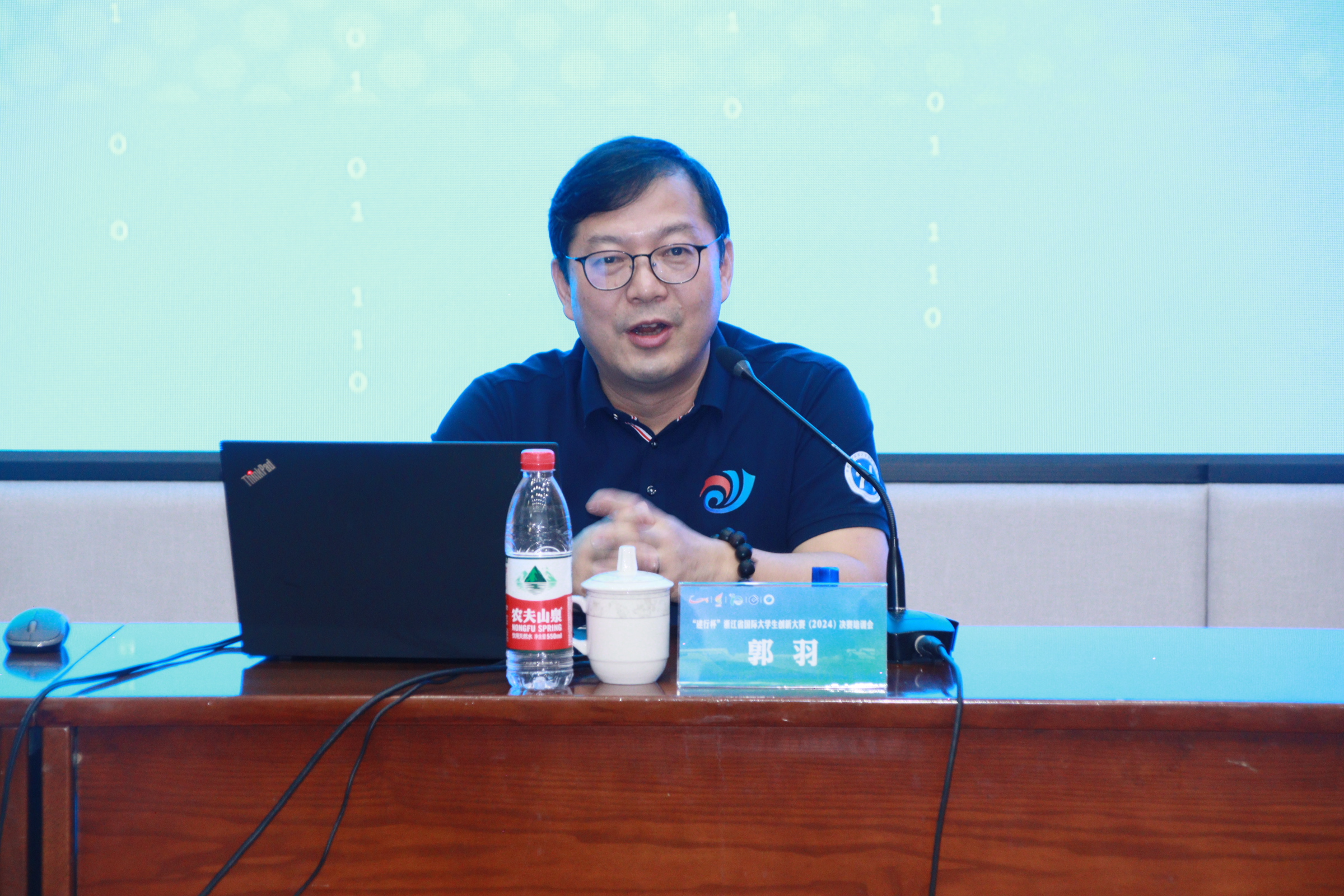杭州大学生创业俱乐部主席、杭州市大学生创业联盟主席团主席郭羽作决赛项目路演培训。他表示,一个好的项目关键在于符合国家政策方针、满足社会需求、体现院校特色、符合同学专业特长,一份金奖项目材料应该具备主题鲜明、定位精准、逻辑清晰、形式专业、内容丰富、结尾有力六大特征。他通过呈现案例,详细阐述了如何精炼项目介绍、有效展示项目亮点、与评委高效互动等问题。