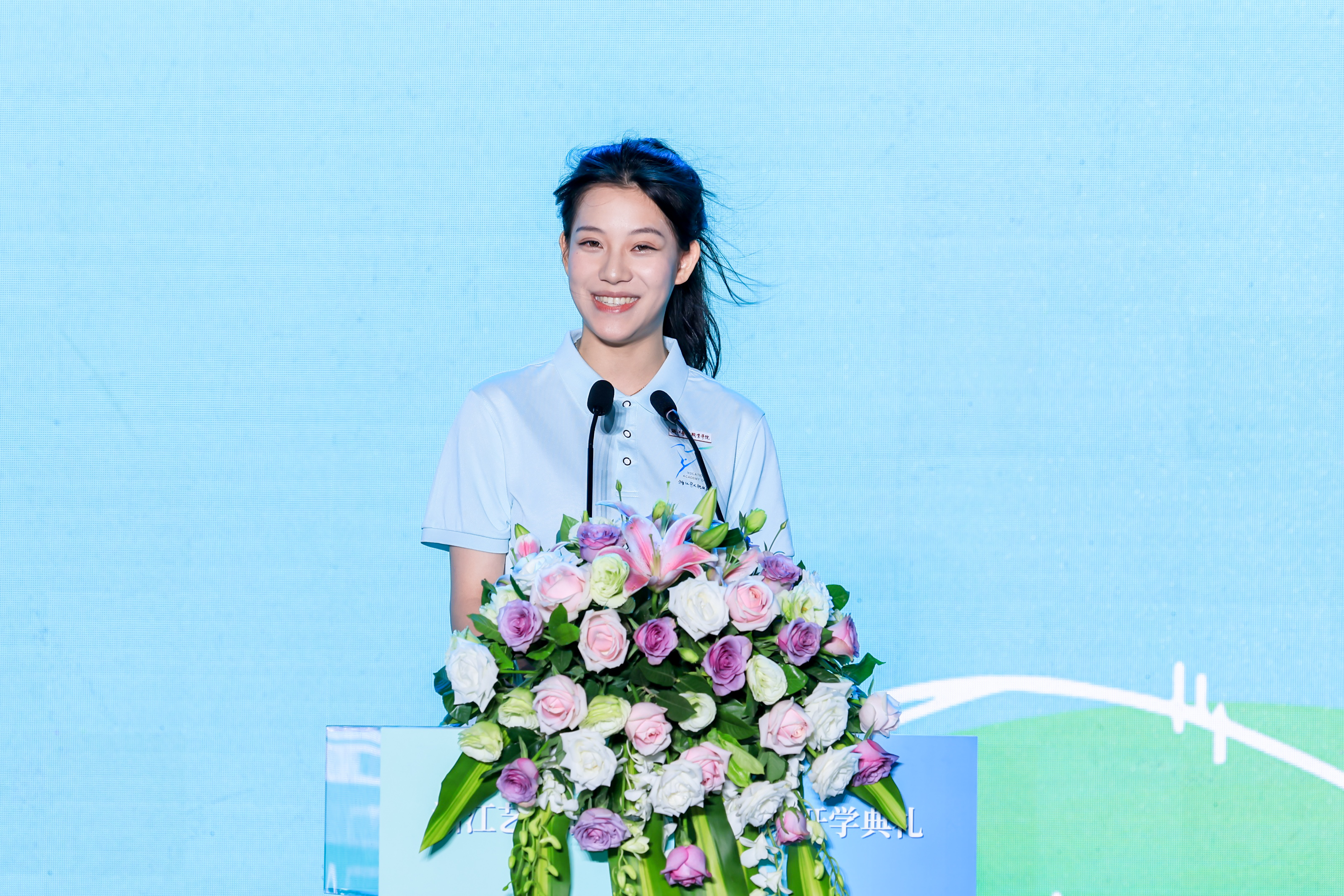 施俊天代表学校向全体新生表示热烈欢迎。他介绍了学校的办学历史、办学成就和知名校友。他表示,来到浙艺,就意味着踏入中国艺术职业教育的第一方阵,意味着站在科艺融合发展的前沿舞台,意味着置身传承创新中华优秀传统文化的实践现场,学校是大家实现艺术梦想最大的底气和依靠。他热忱地期望新生作为“有情怀”“有志气”“有自信”“有作为”的一代,继承并践行“求真 尚美 精艺 修为”的校训精神,乘时代之风,立少年之志,踏艺术之旅,筑青春之梦。他寄语同学们: