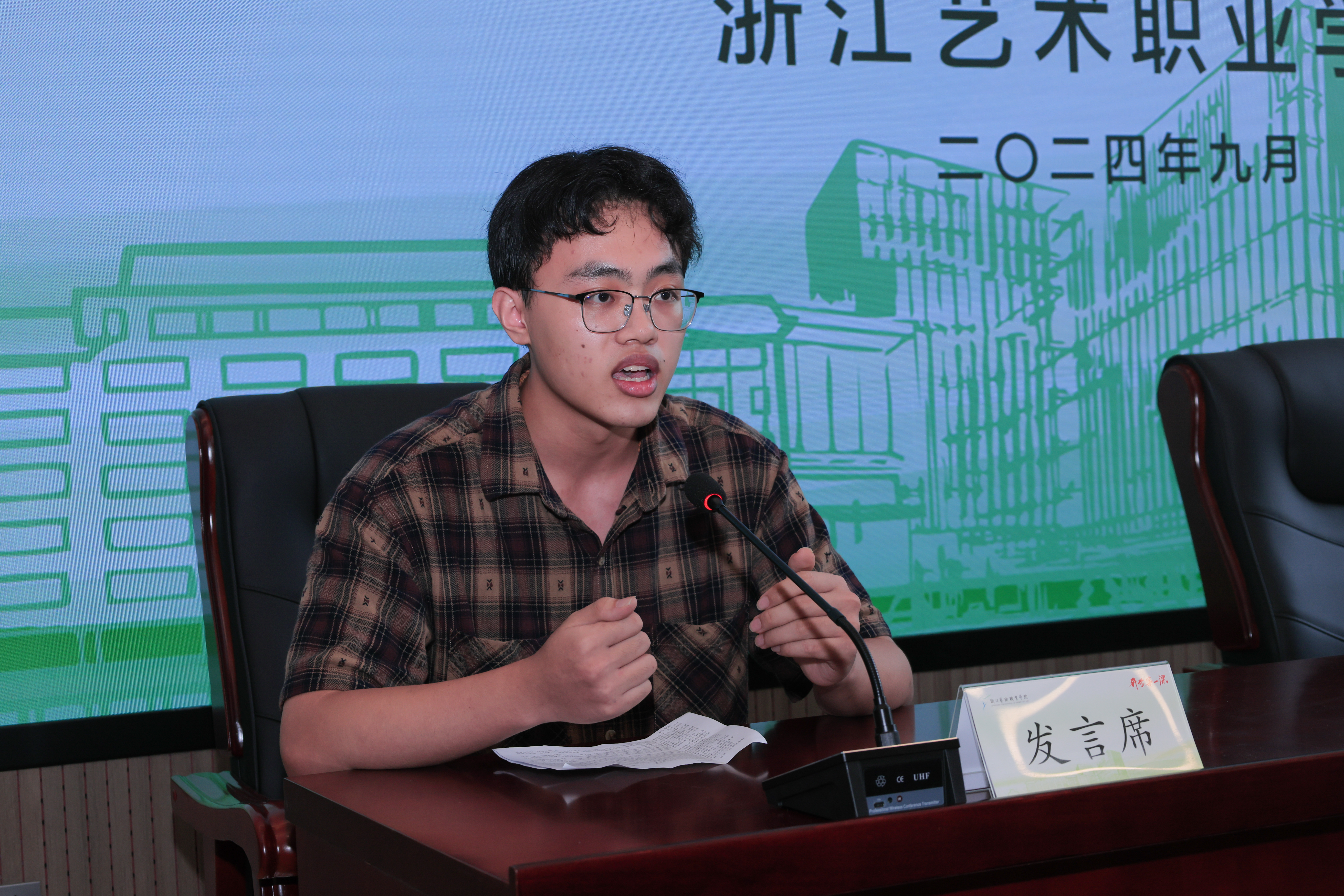 他表示,习近平总书记深刻指出,“文艺是铸造灵魂的工程,文艺工作者是灵魂的工程师。艺术的最高境界就是让人动心,让人们的灵魂经受洗礼,让人们发现自然的美、生活的美、心灵的美。文艺工作者不仅要在文艺创作上卓越,而且要在思想道德修养上追求卓越,更应身体力行践行社会主义核心价值观,努力做到言为士则、行为世范,结合新的时代条件传承和弘扬中华优秀传统文化,传承和弘扬中华美学精神”,希望同学们常怀立德笃行之志,树立远大志向、勤学苦练专业、善于团结友爱,在三年的学习经历中,学到真知识、真本领,真正做到学有所获、学有所成、学有所用,与浙艺一起成长,用奋斗擦亮人生、让梦想照进现实,书写无愧于这个伟大时代的华彩篇章!
