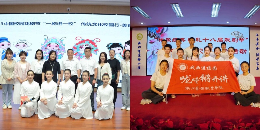 戏曲学院推出“中小学戏曲师资培训”“戏曲进校园”“送教下乡”“文化礼堂送演”等活动千余场,连续14年承担浙江省民营剧团“百团千人培训项目”和优秀剧目展演活动,《推动民营职业剧团脱困的建议》研究报告获省委领导批示及社会好评。建有省、市两级优秀传统文化传习产教融合实践中心,4项戏曲基层院团类人才培训入选国家级培训项目。承办中韩日戏剧节、中国希腊文化和旅游年之“照鉴·中希戏剧对话”等国际文化交流活动,推动戏曲出海。