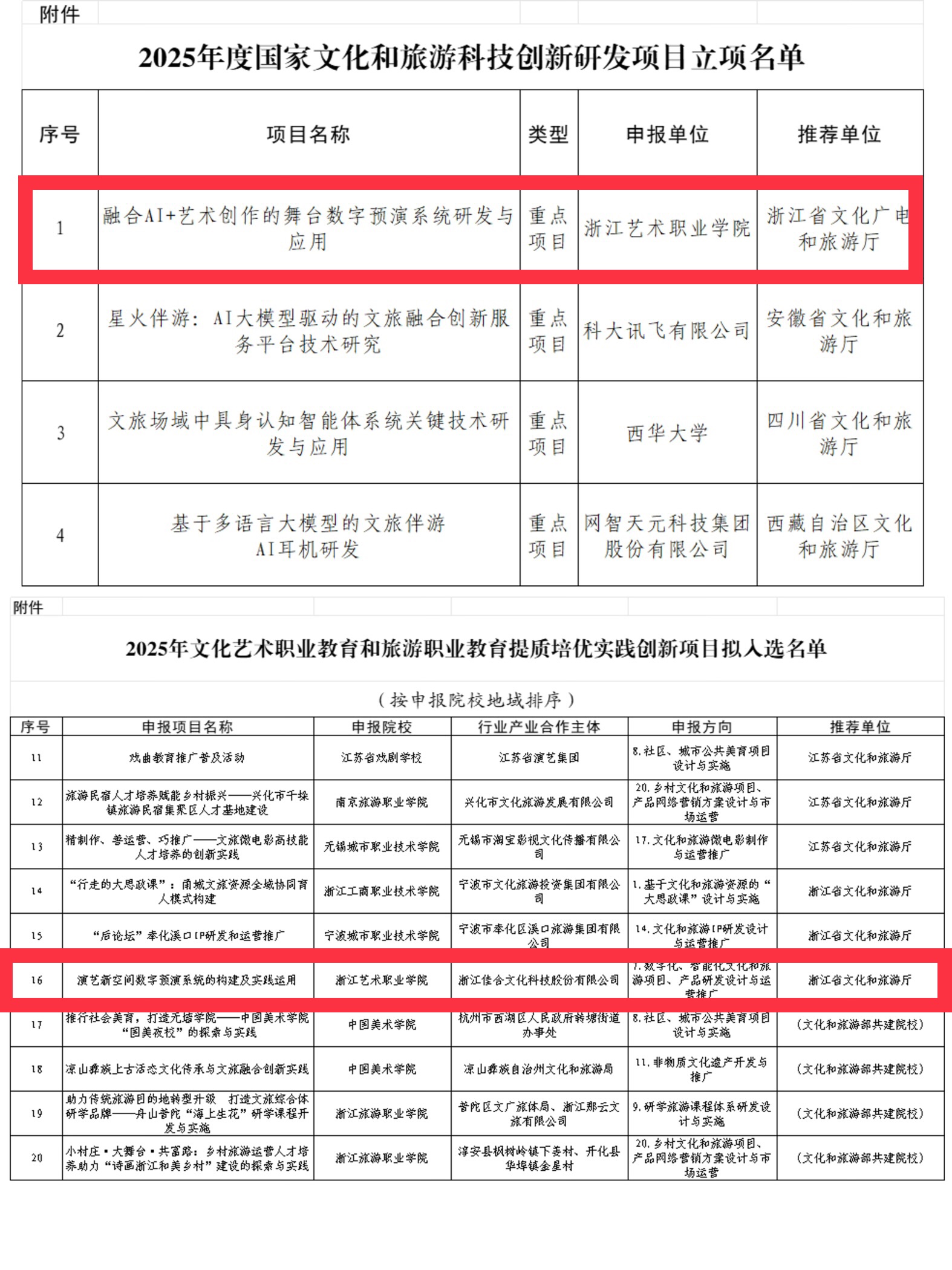 学院办学涵盖中高职、本科等层次,目前在校学生数达1400余人。拥有国家级“双高”专业群专业1个、浙江省特色专业2个、全国高等艺术职业院校骨干专业1个、教育部校企共建生产性实训基地1个、浙江省示范性实训基地2个、浙江省产学合作协同育人项目2个,设有浙江乡村文旅融合研究中心,牵头成立浙江数字演艺协会。2023年牵头成立舞台美术行业产教融合共同体,建设舞美专业教学资源库,立项国家文化和旅游科技创新研发重点项目1个、文化艺术职业教育和旅游职业教育提质培优实践创新项目1个,开展委托培养学生200名,订单培养学生55名,学徒制培养学生100名,面向行业企业员工开展岗前培训、岗位培训和继续教育4800余人。