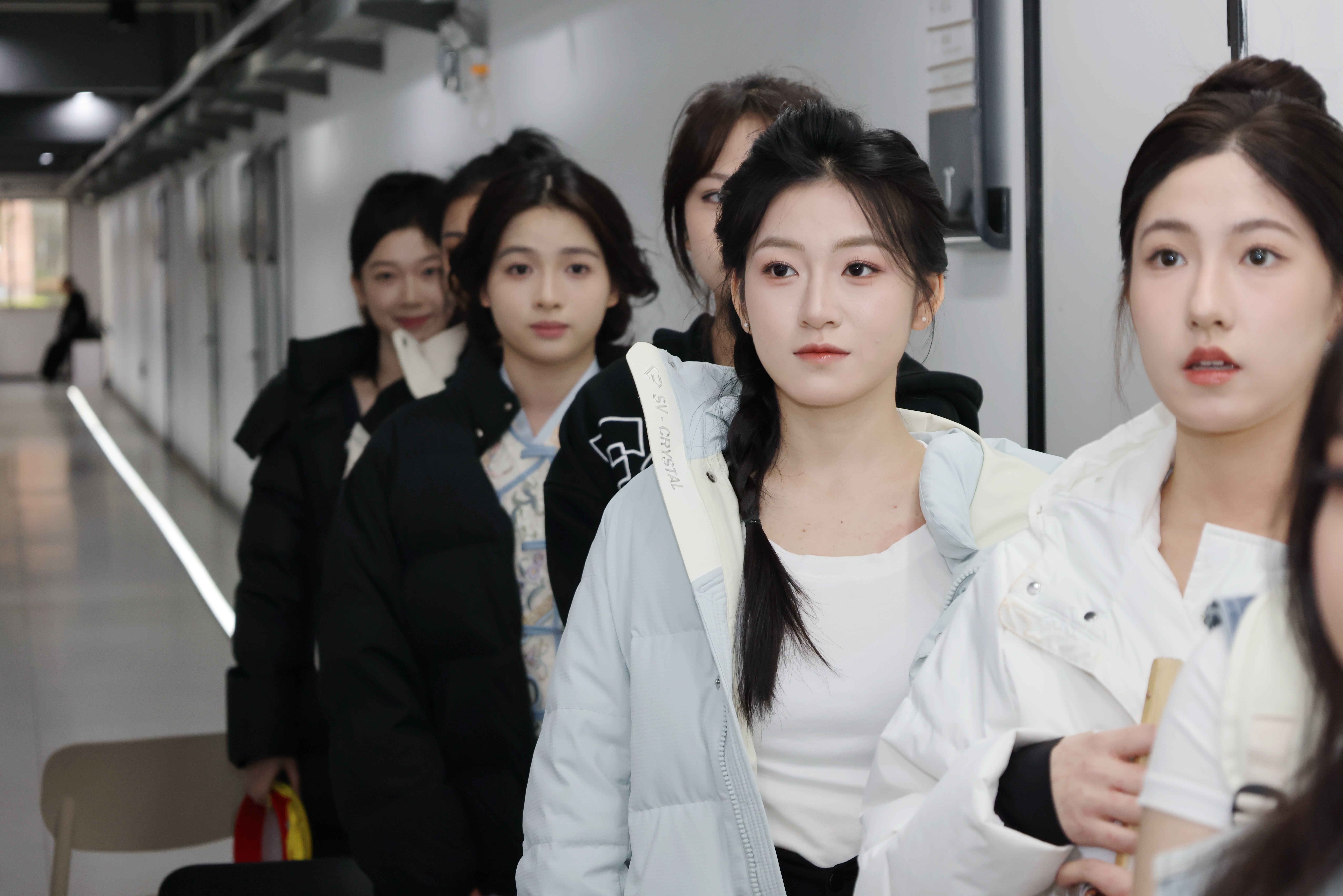 播音与主持候考区,考生们通过系统的开嗓练习、形体拉伸准备以最佳状态迎接考试。