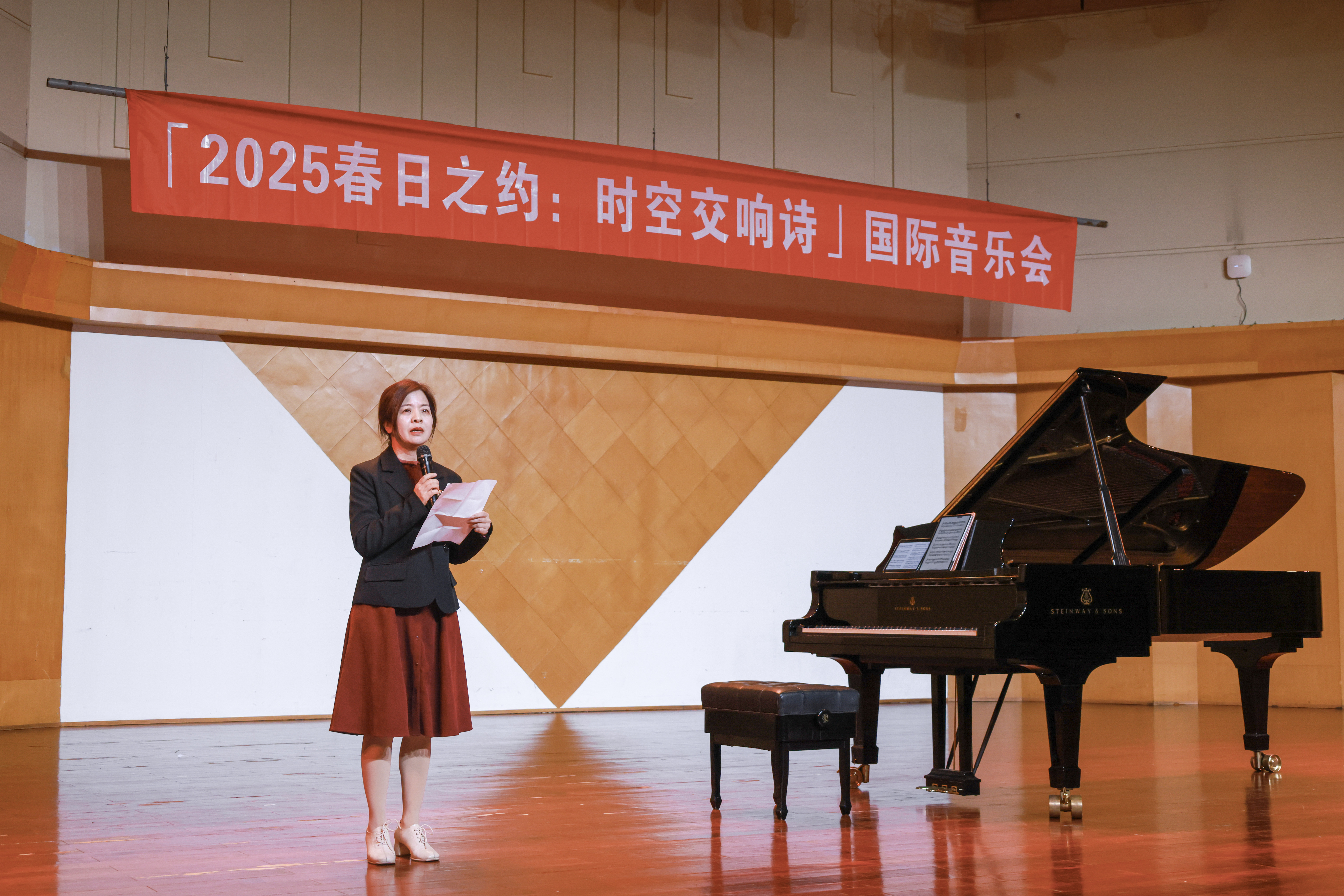 "这是我校推进艺术教育国际化的重要里程碑。"我校党委委员、副校长刘秀峰在"2025春日之约:时空交响诗"音乐会上致辞,"我们期待通过多形式的交流平台,让师生在艺术对话中收获成长。"