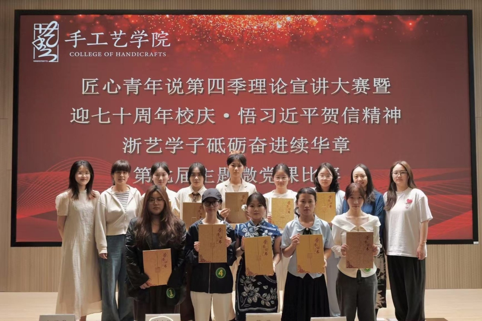4月17日,手工艺学院在新教学楼A102小报告厅举办“匠心青年说”第四季理论宣讲大赛暨“迎七十周年校庆·悟习近平贺信精神浙艺学子砥砺奋进续华章”第七届主题微党课比赛。10名手工艺学子为大家呈现了一场独具匠心、声情并茂的宣讲盛宴。