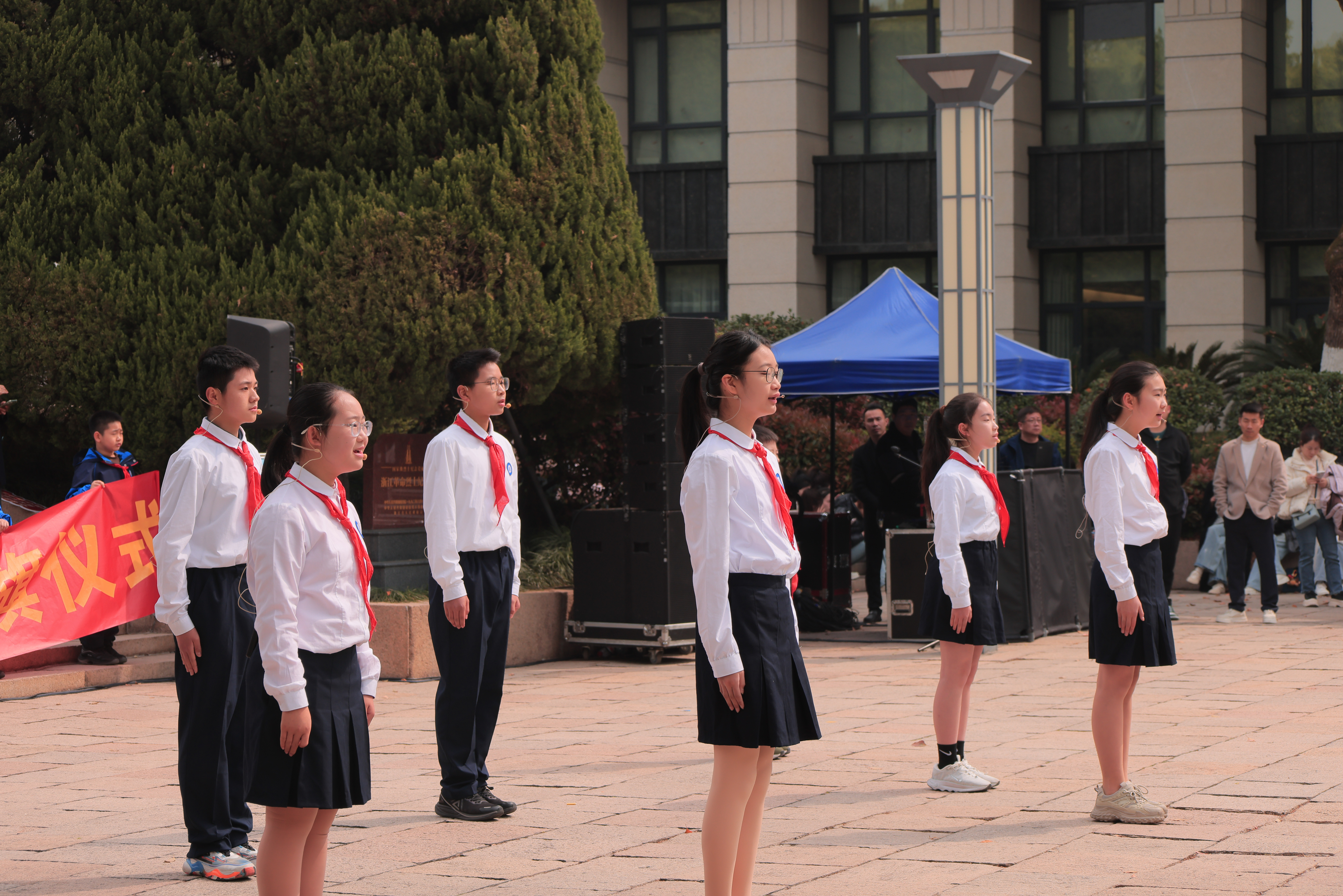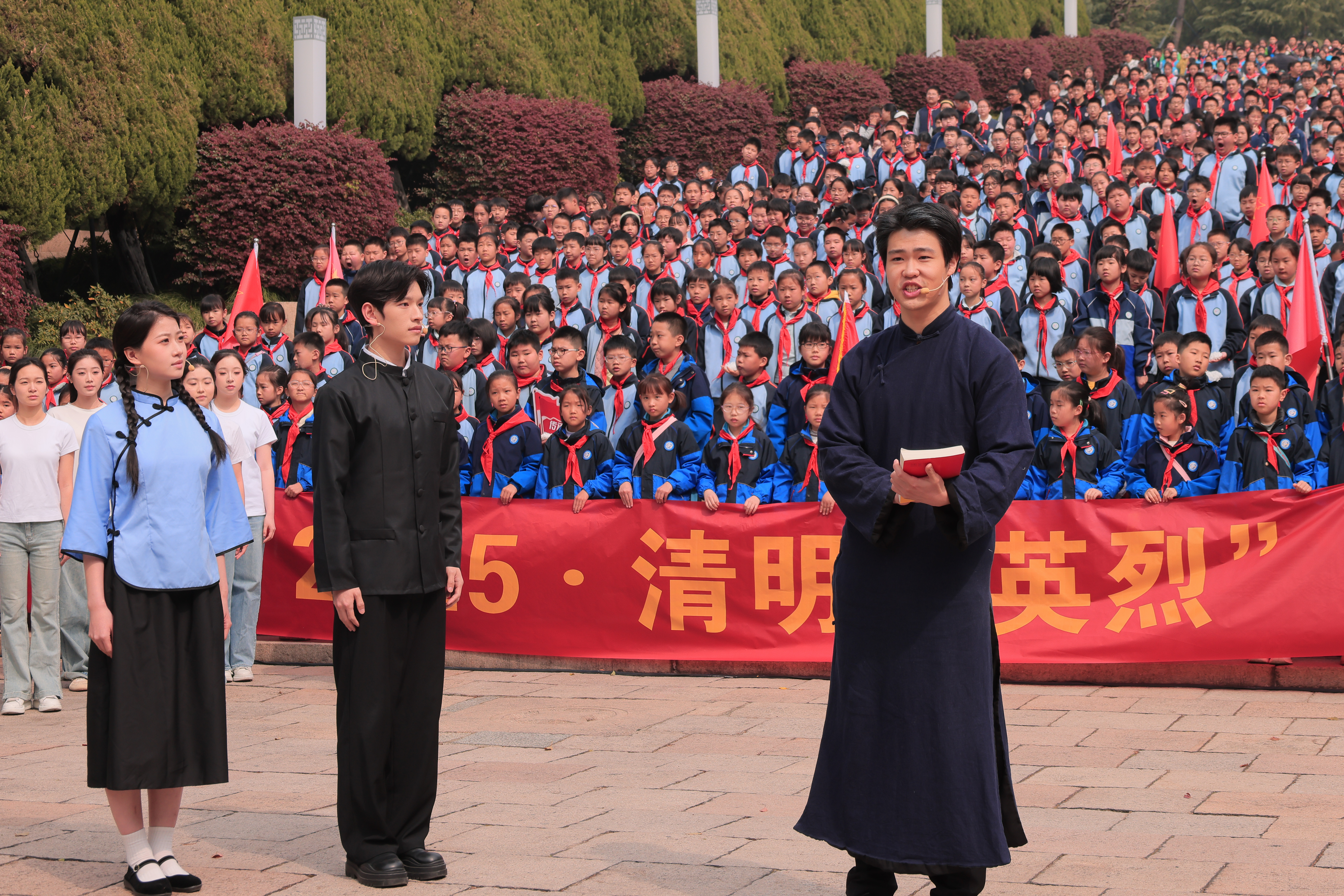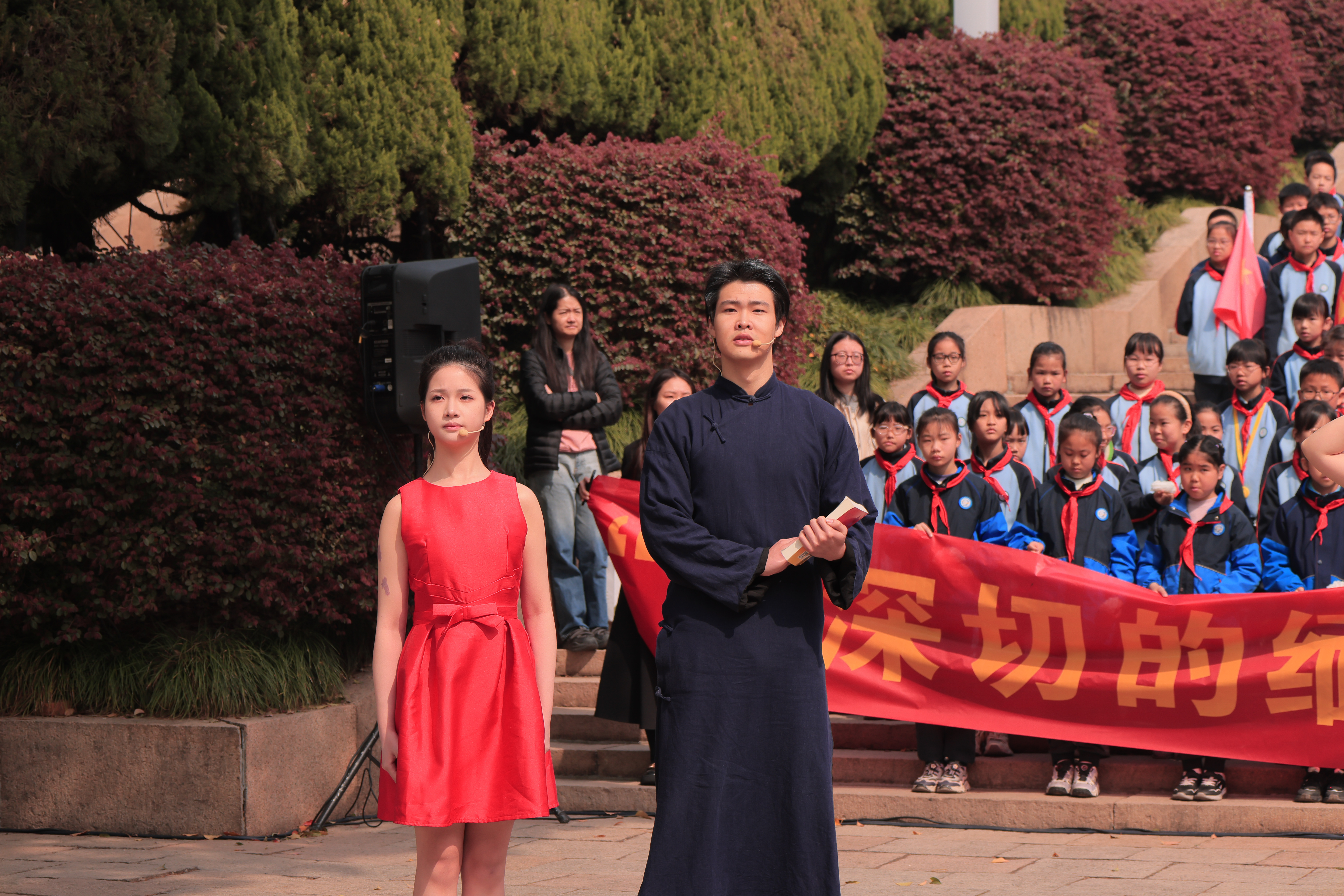 活动期间,全体师生还参加了浙江革命烈士纪念馆举办的“最深切的缅怀·2025”清明祭英烈主题升旗仪式。伴随着雄壮的国歌声,五星红旗冉冉升起,全体人员肃立行注目礼。升旗仪式后,一场融合了诗歌朗诵、集体合唱、情景剧等多种表现形式的文艺演出拉开帷幕。