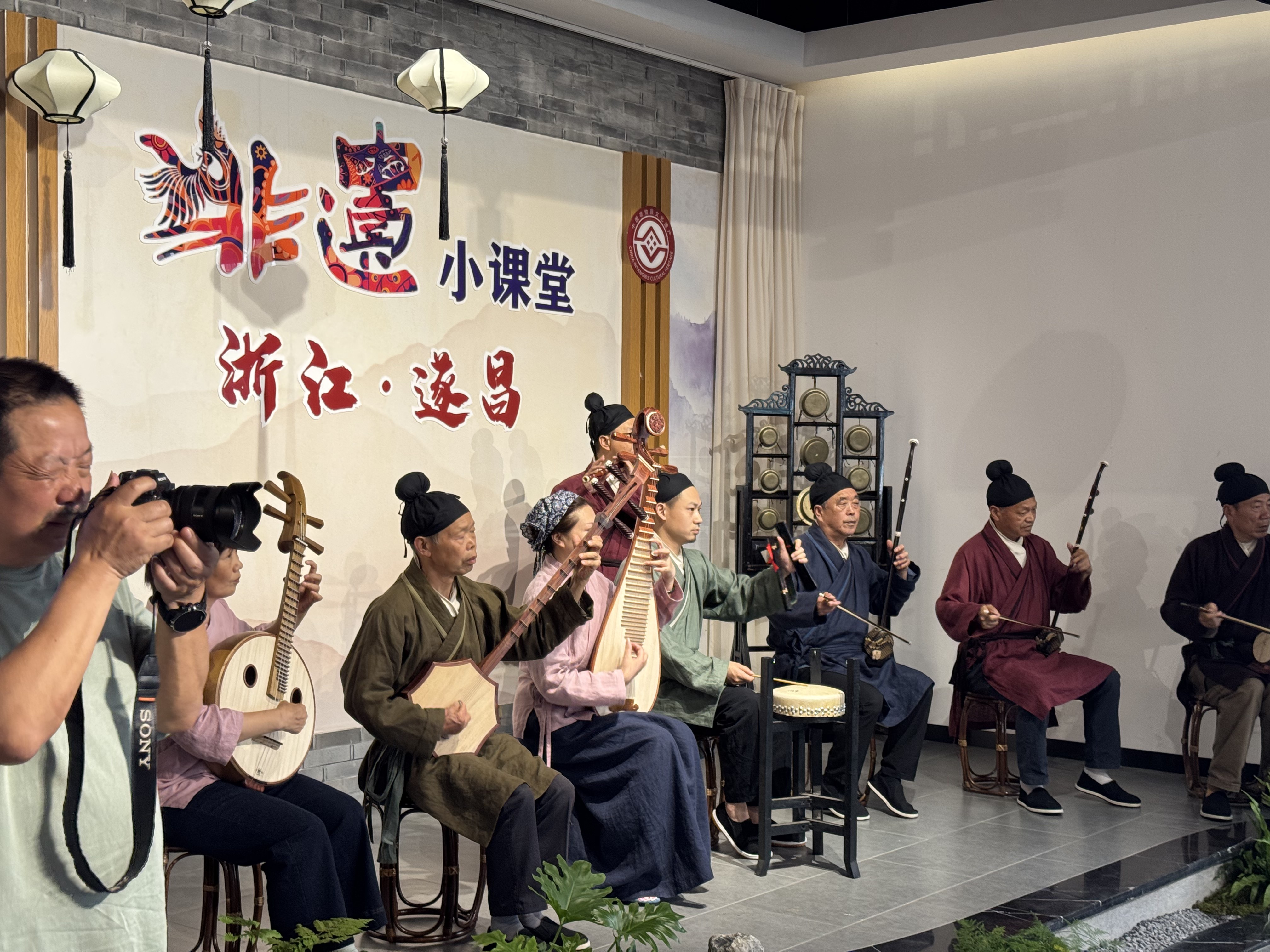 当天下午学员们先后参观了遂昌县非物质文化遗产馆和关雎文化园。在非遗馆内,学员们通过实物展示、影像资料,全面了解了遂昌县丰富的非遗资源及其保护成果,学员们还观赏了“遂昌昆曲十番”的戏曲艺术表演。关雎文化园则展示了非遗技艺在现代生活中的创新应用,学员们纷纷表示深受启发。