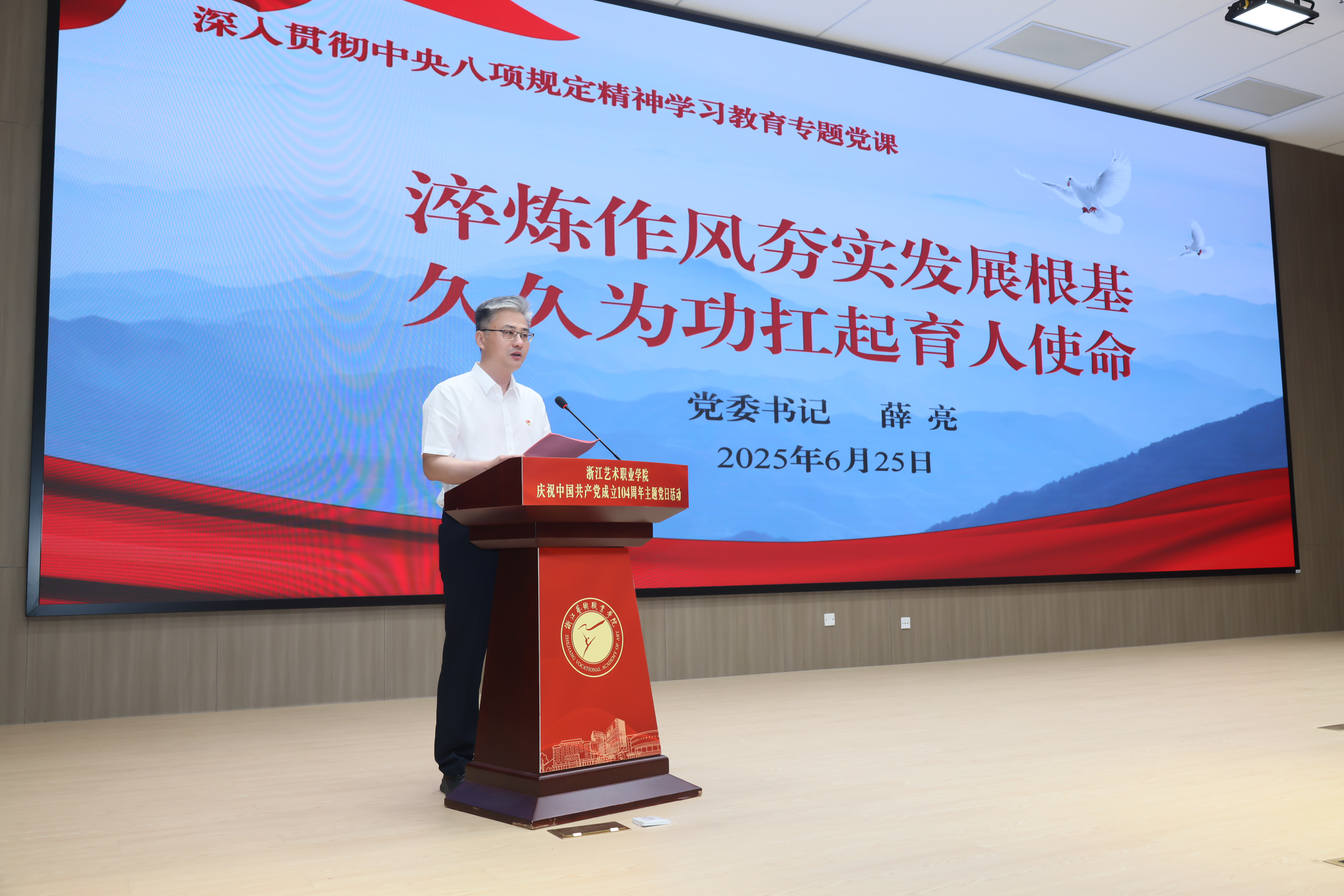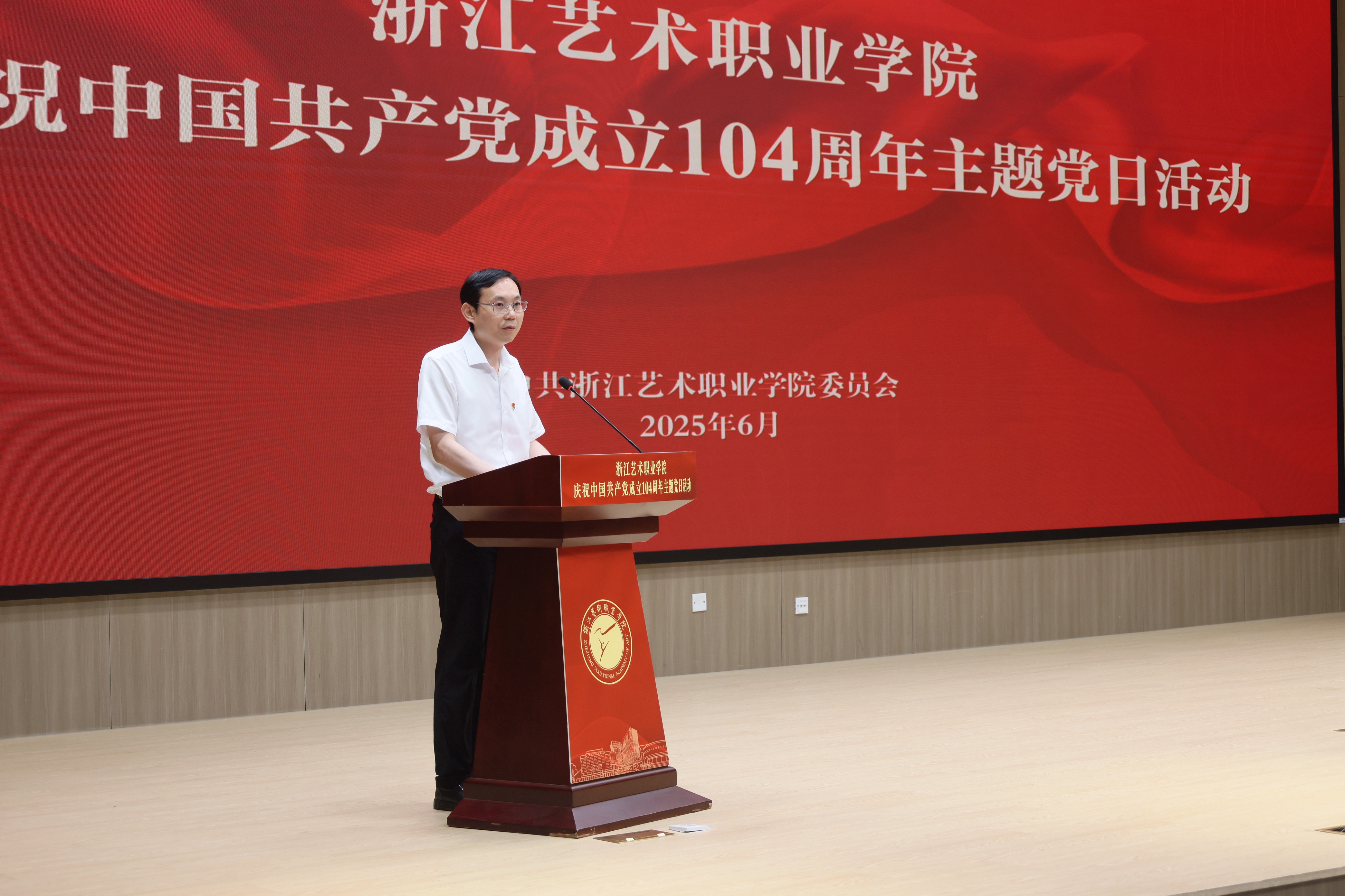施俊天表示,我们以简朴而隆重的方式纪念这个特殊的日子,旨在激励学校各级党组织和全体党员、师生、干部强化党性观念、宗旨意识,增强荣誉感、归属感和使命感,进一步推进深入贯彻中央八项规定精神学习教育,深入学习贯彻习近平总书记关于党的建设的重要思想、关于党的自我革命的重要思想和考察浙江时提出的“4+1”重要要求,为努力打造新时代文化艺术职业教育“浙艺经验”和“浙江样板”,不断开创学校高质量发展新局面而接续奋斗。