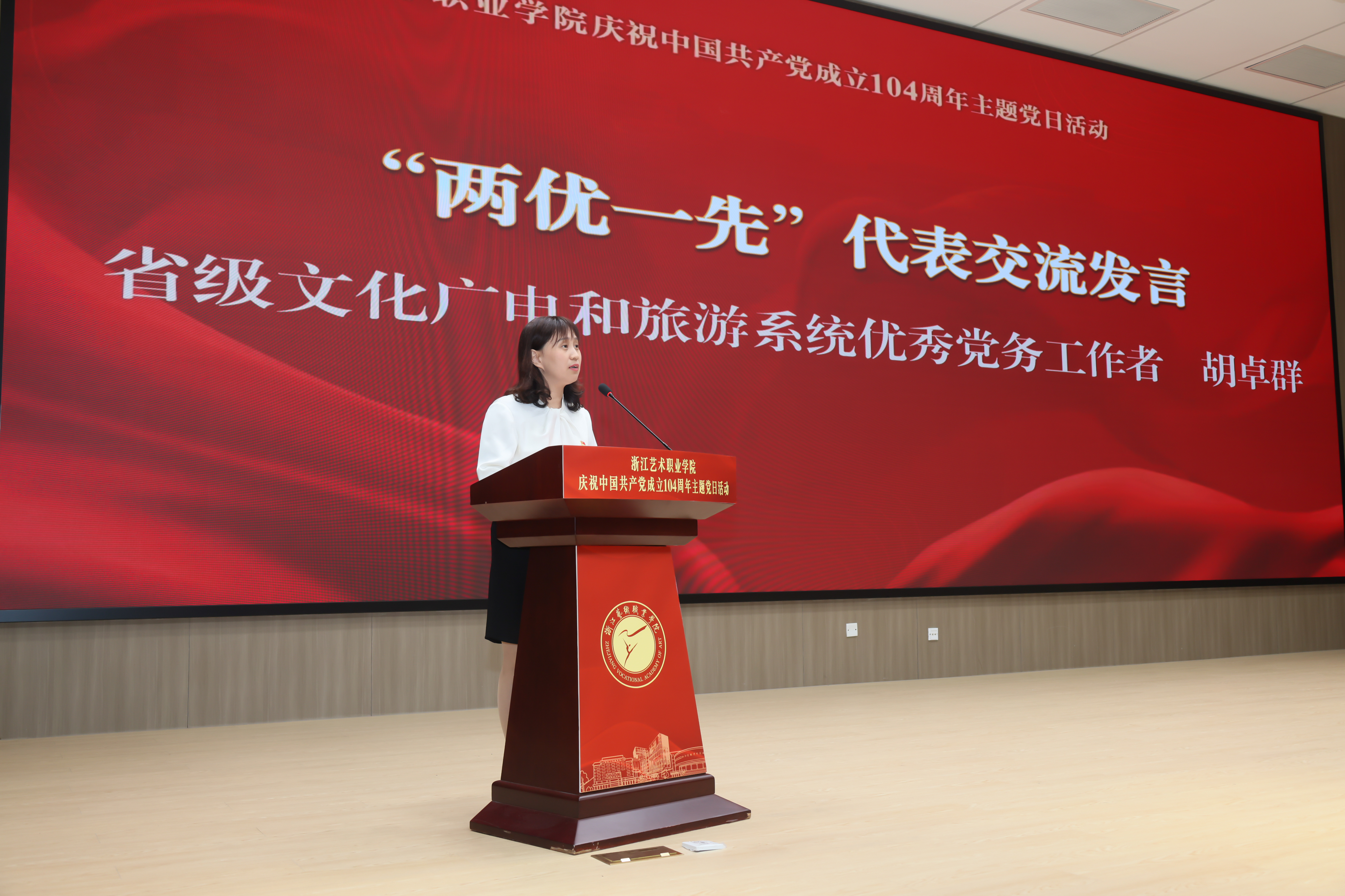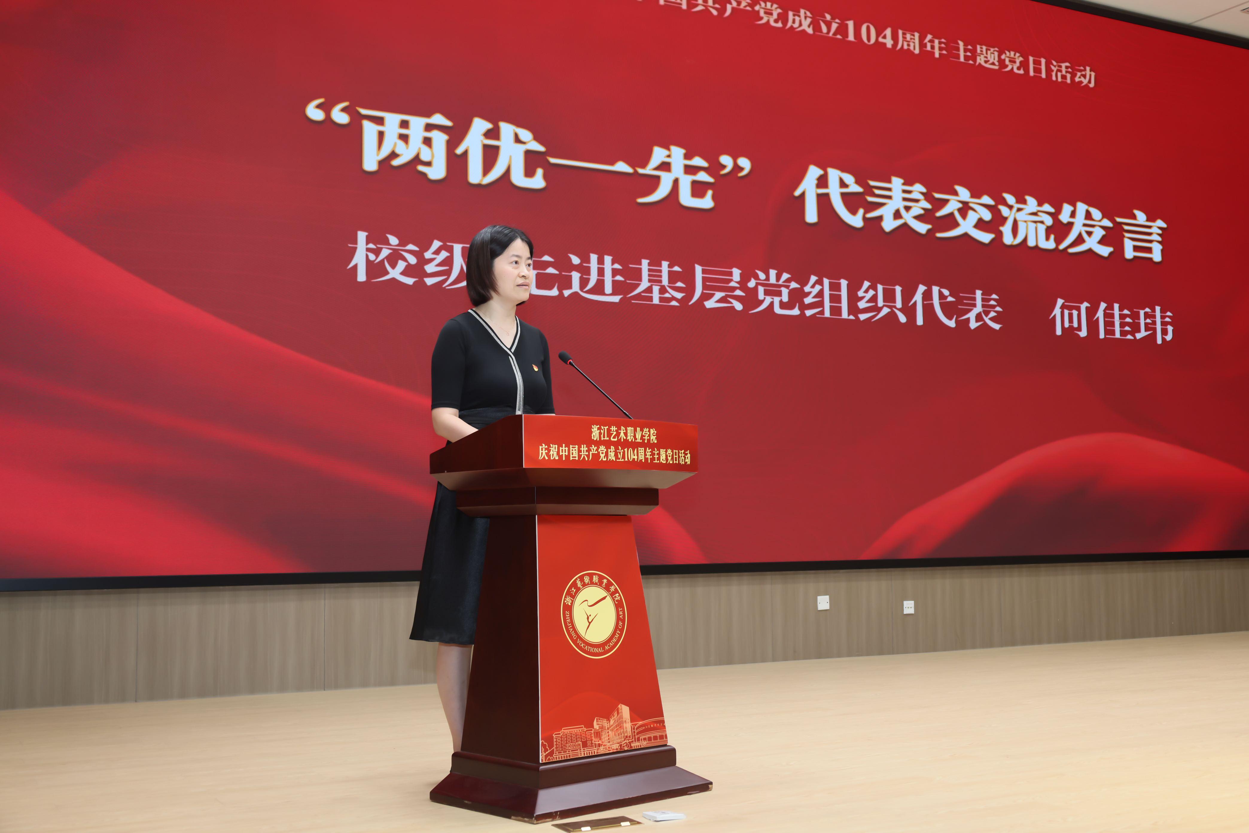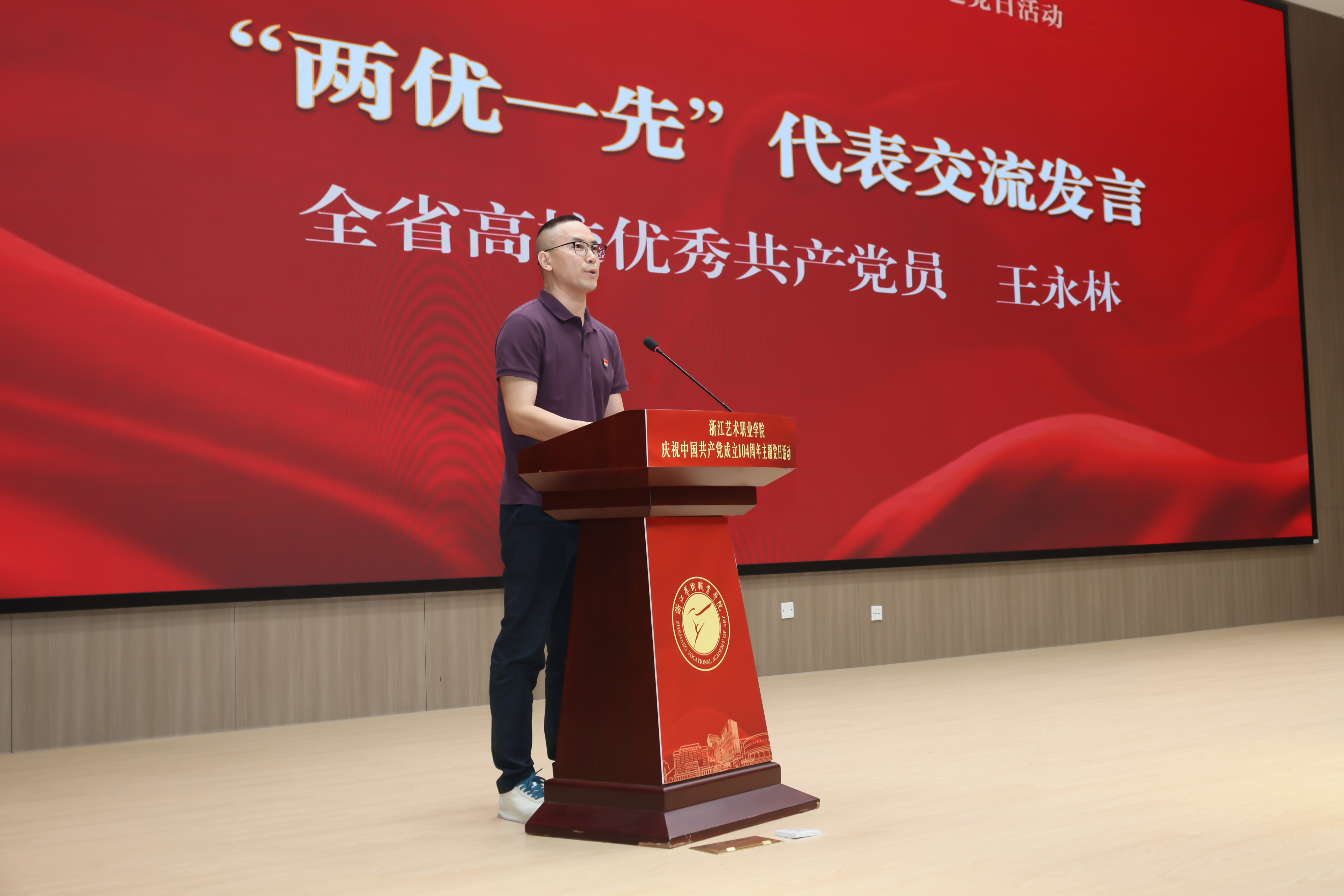 全省高校优秀共产党员、省级C类高层次人才、演艺与教育学院院长助理、教工第一党支部书记王永林,2024年度省级文化广电和旅游系统优秀党务工作者代表、马克思主义学院副院长、党校教研部主任胡卓群,2024年度校级先进基层党组织代表、设计学院党总支副书记、副院长何佳玮分别上台分享经验。